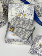 CD Saddle Lotus Wallet 10.5cm Grayish Jacquard GHW