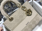 MEDIUM LADY D-LITE BEIGE CANNAGE EMBROIDERY