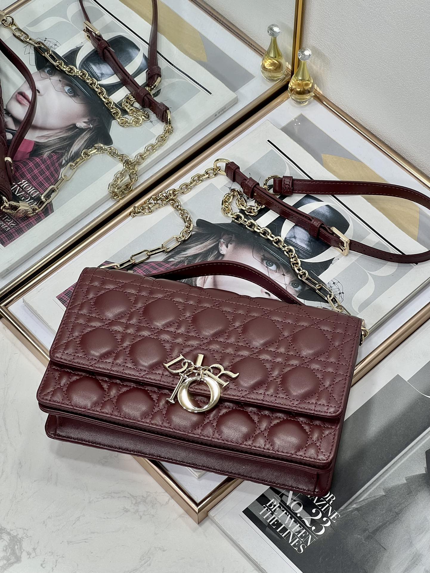 MY CD 24 TOP HANDLE BAG BURGUNDY LAMBSKIN