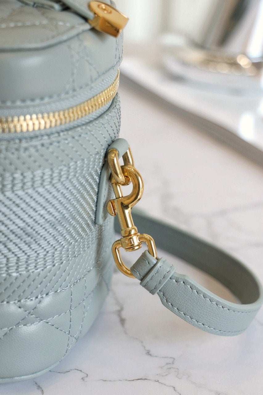 • Cloud blue lambskin with Cannage topstitching
