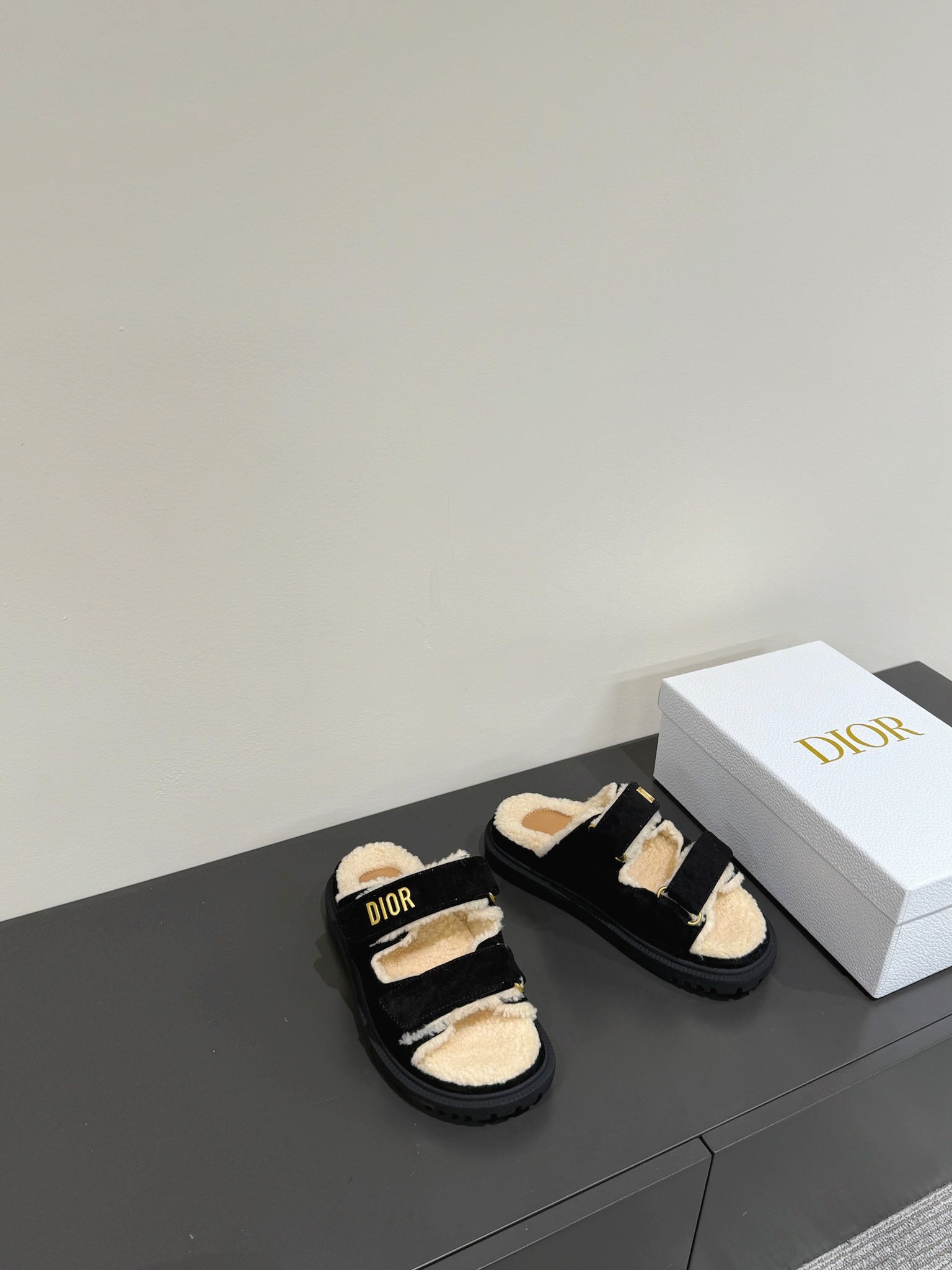 Dioract Slide In Black Suede And Wool Fleece Lining 109875