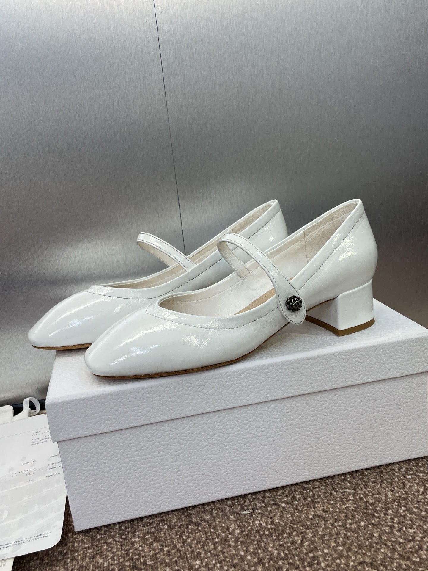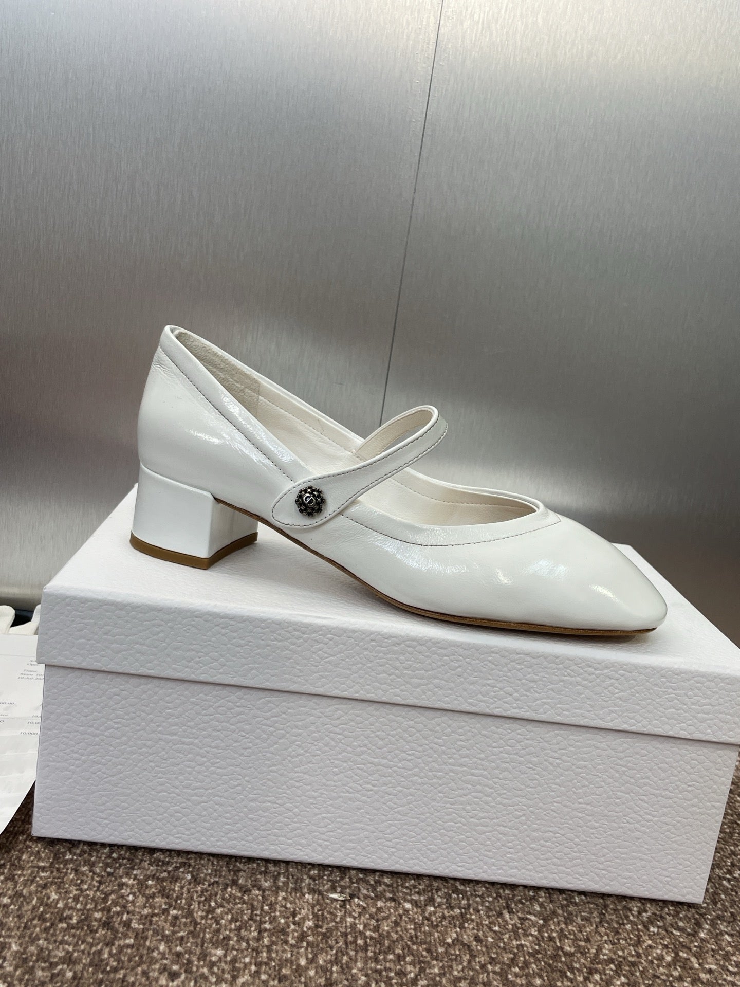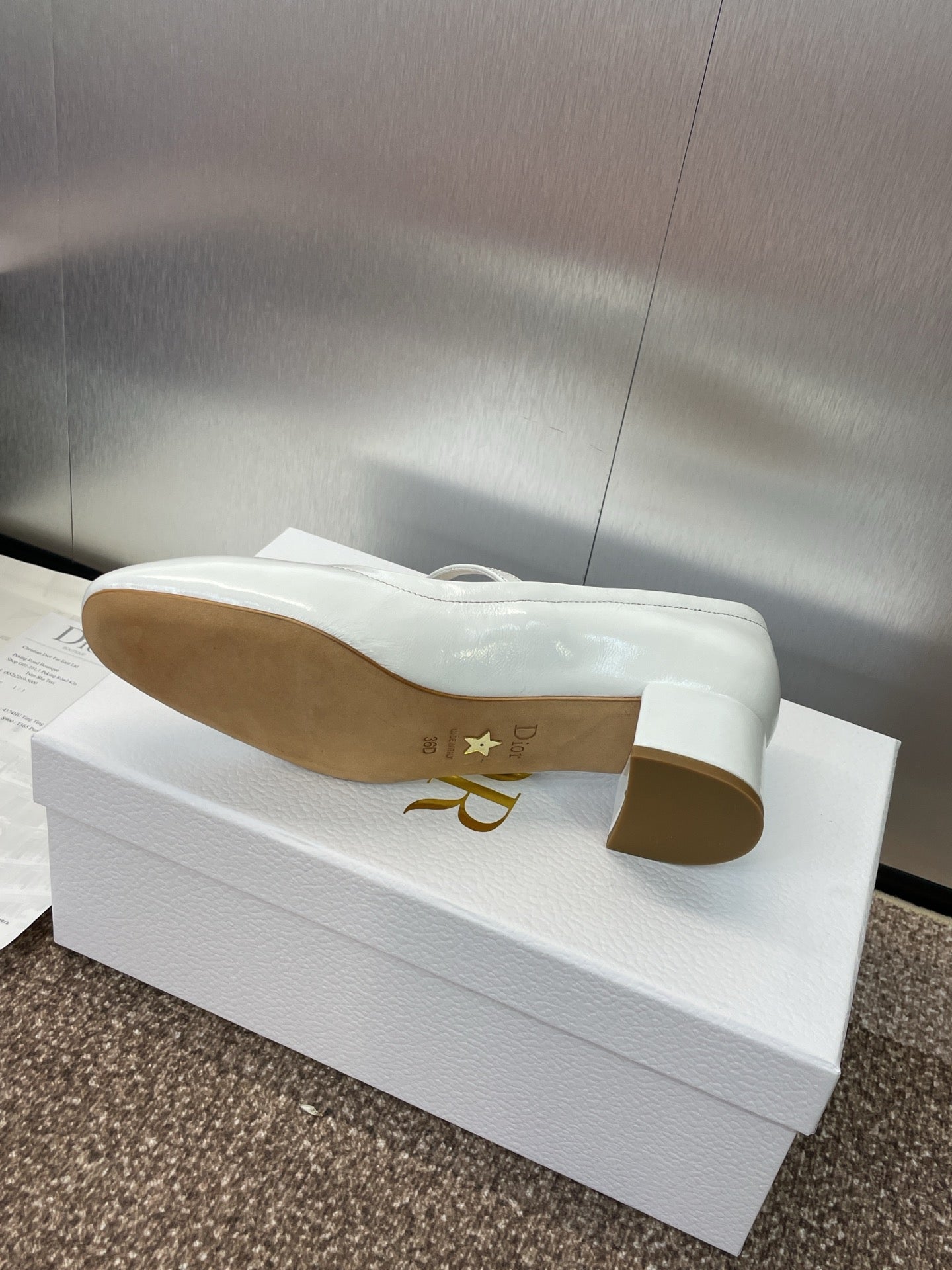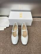 CD Chunky Heel Round Toe Ballet White Patent Leather 524206