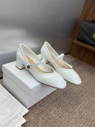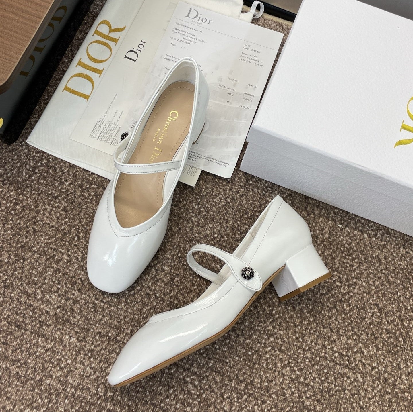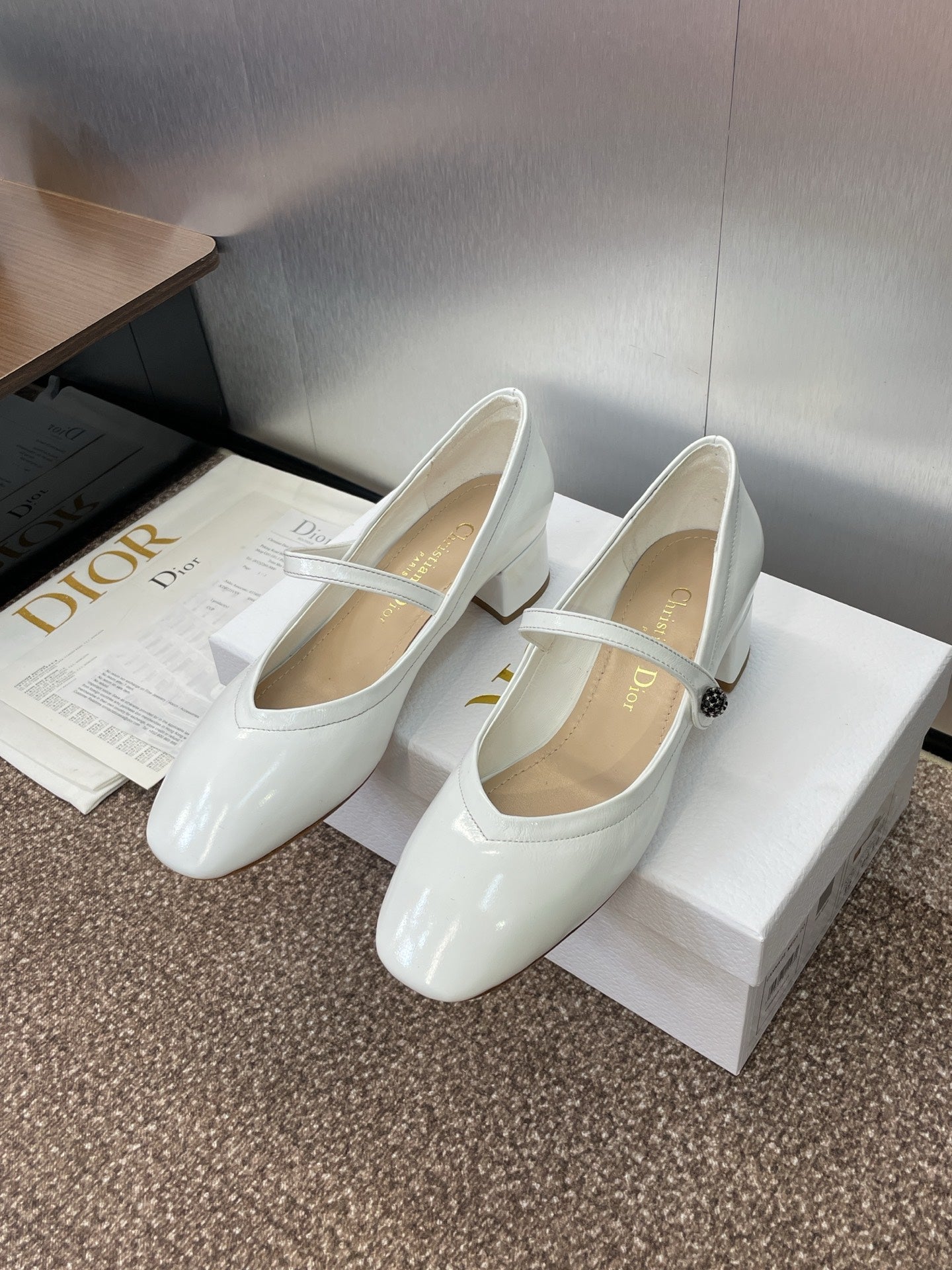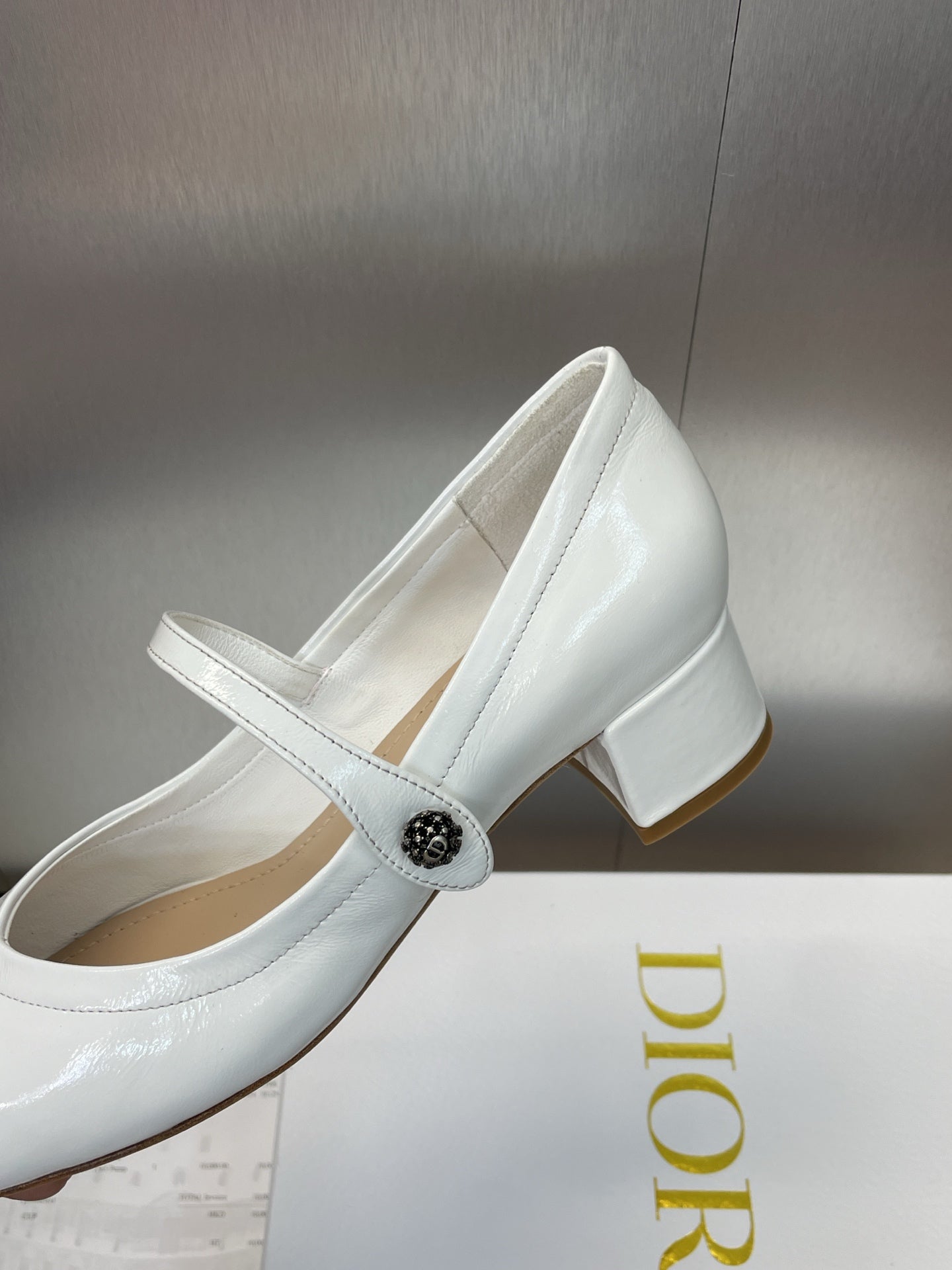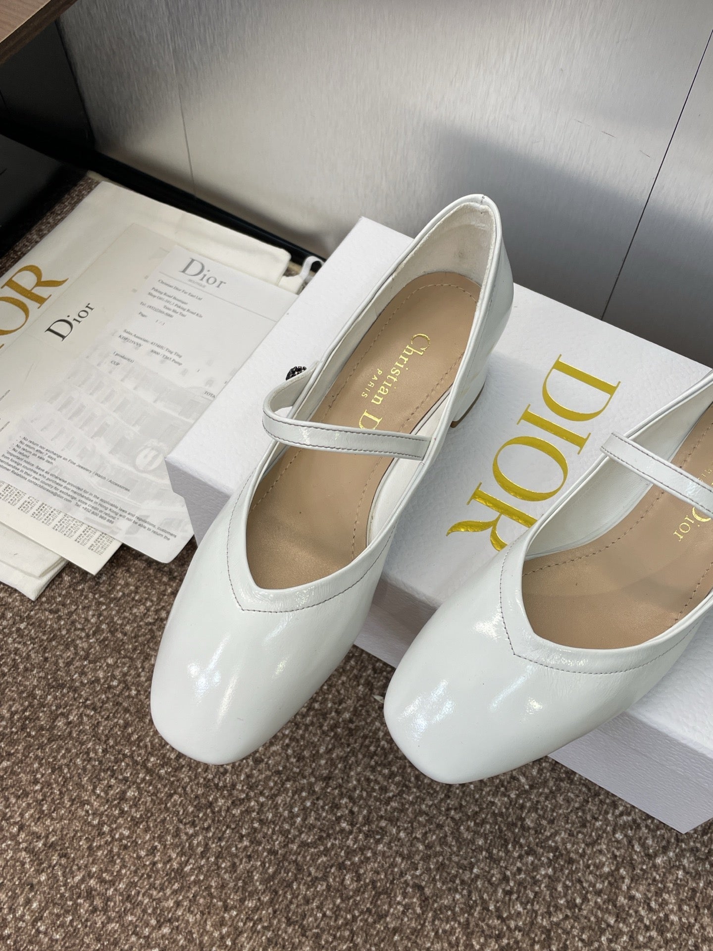 CD Chunky Heel Round Toe Ballet White Patent Leather 524206