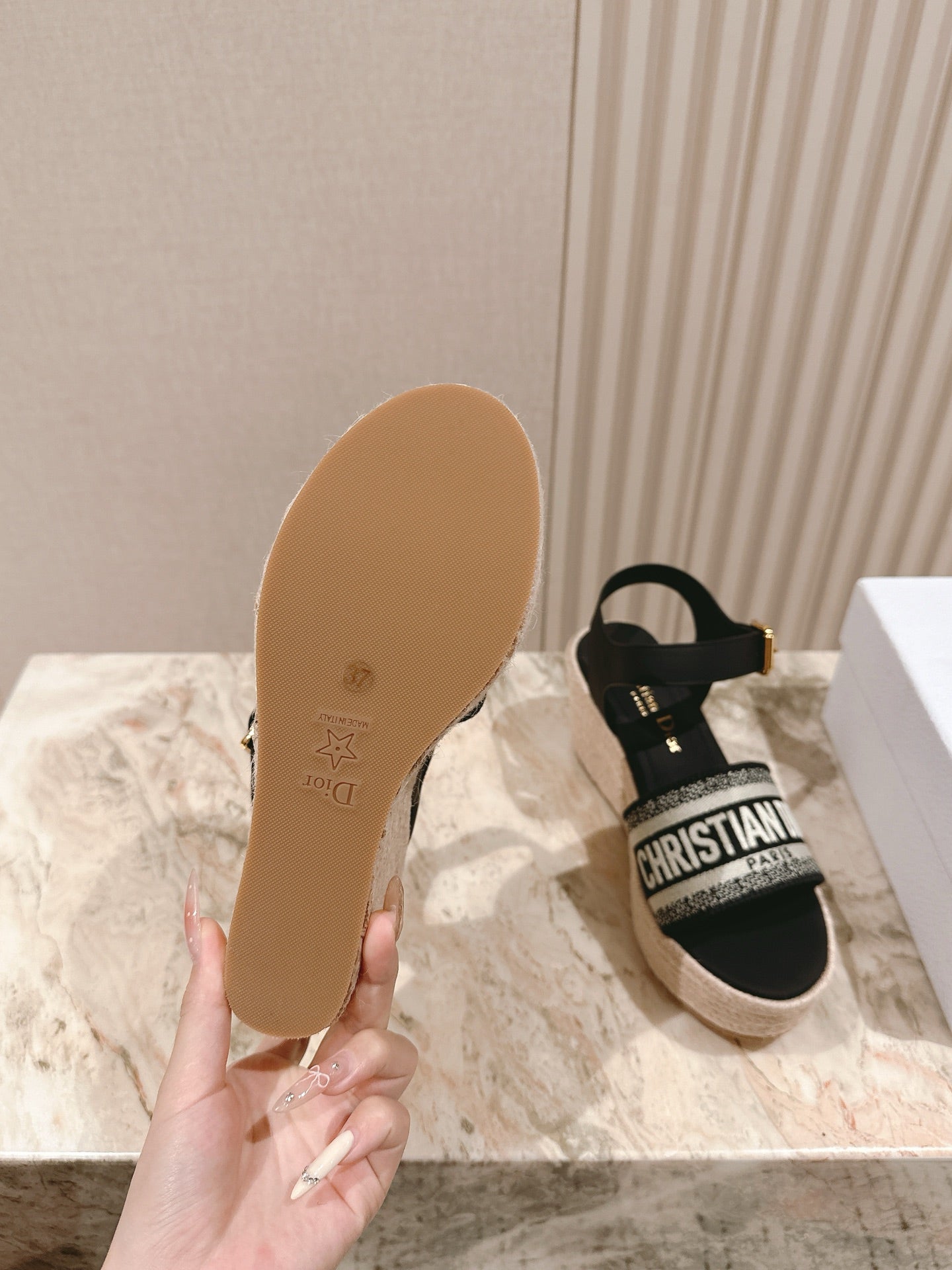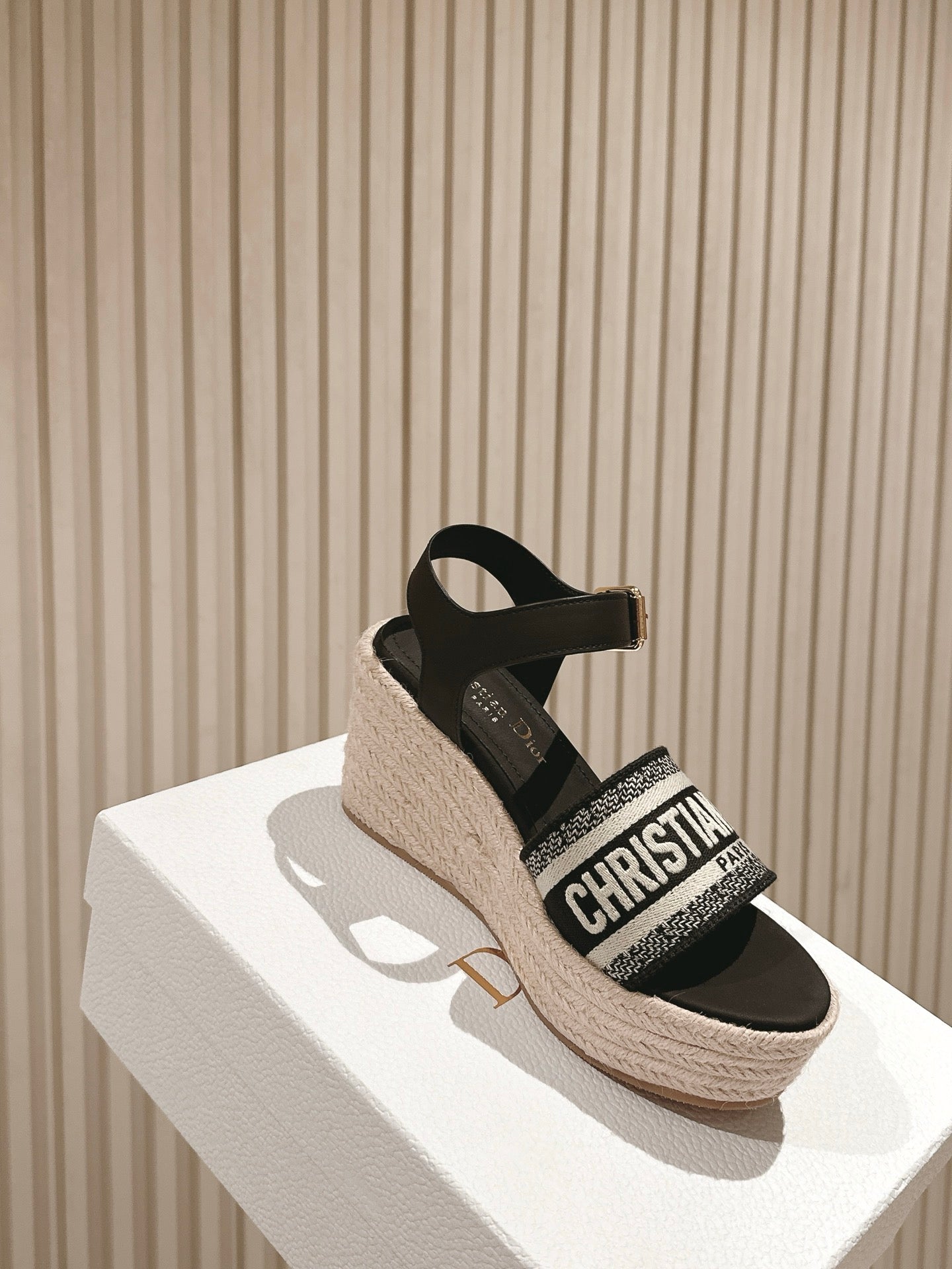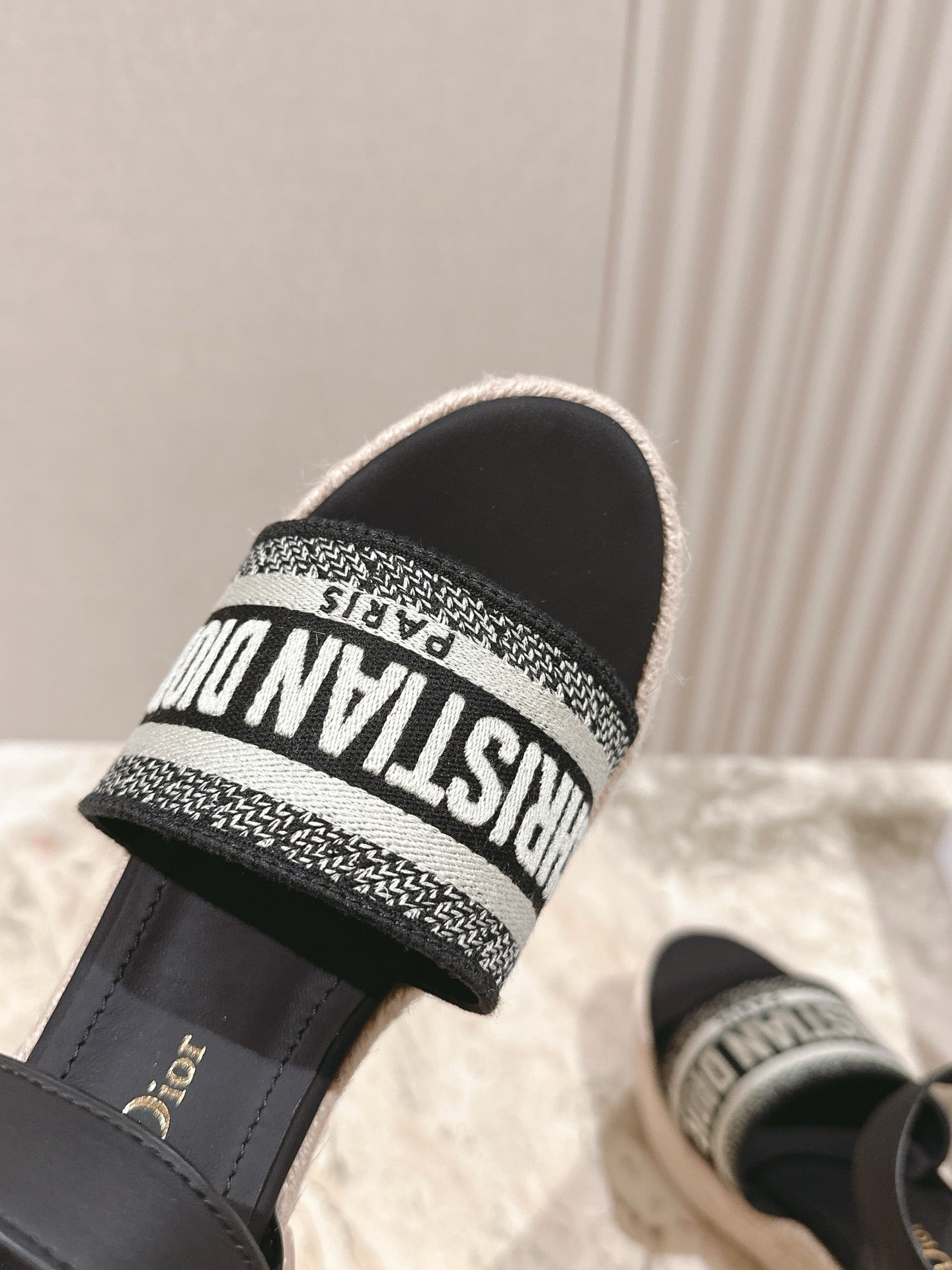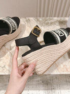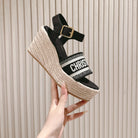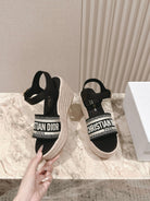 CD Dway Wedge Sandal 85mm Black Calfskin and Embroidered 483078