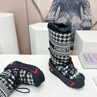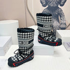 CD Platform Snow Boots Black White Cowhide Nylon Fabric 539656