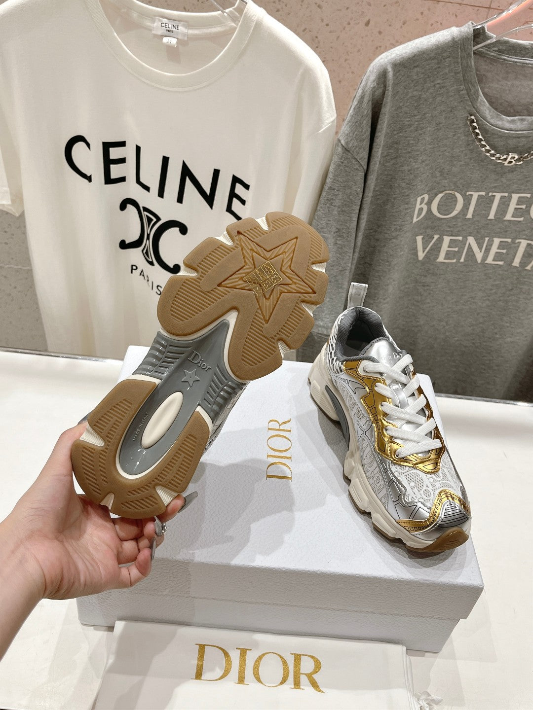 CD Vibe Sneaker White Mix Grey Gold Polyester Mesh Fabric And Cowhide