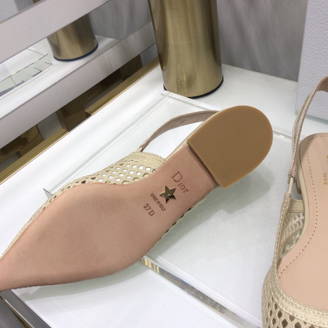 JAdior slingback flat transparent mesh beige embroidered cotton