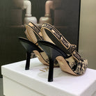 JAdior Slingback Pump 95 Black Embroidered Cotton with Gold-Tone Metallic Thread