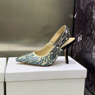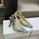 JAdior Slingback Pump 95 Duck Blue Embroidered Cotton with Gold-Tone Metallic Thread