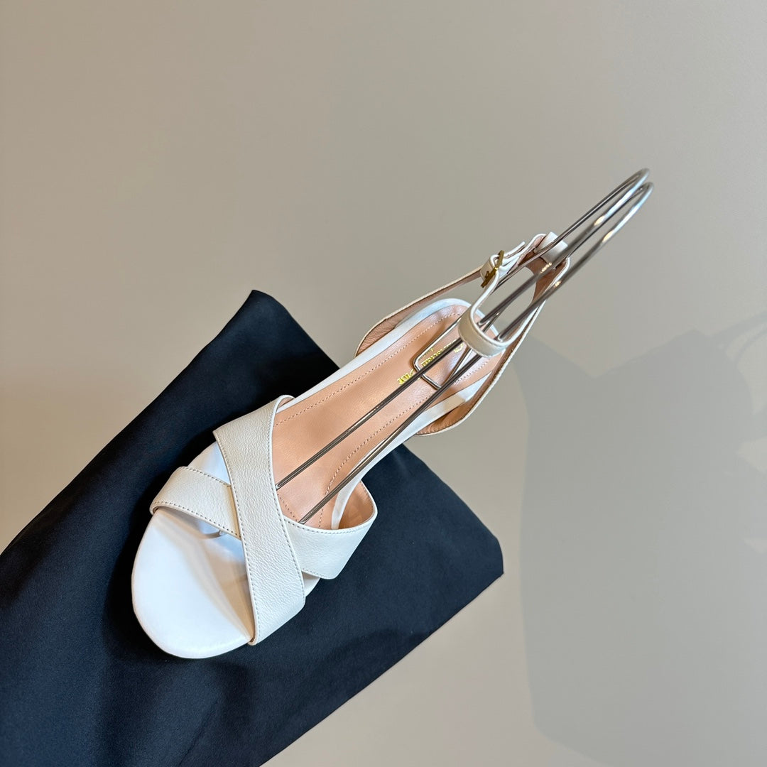 CD Tribales Heeled Slide 80mm Beige Lambskin And Studded With Stones