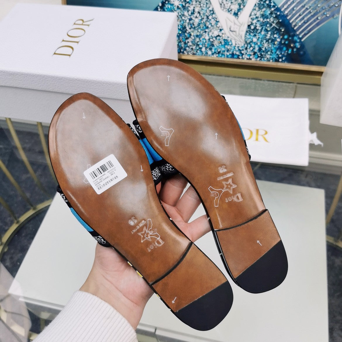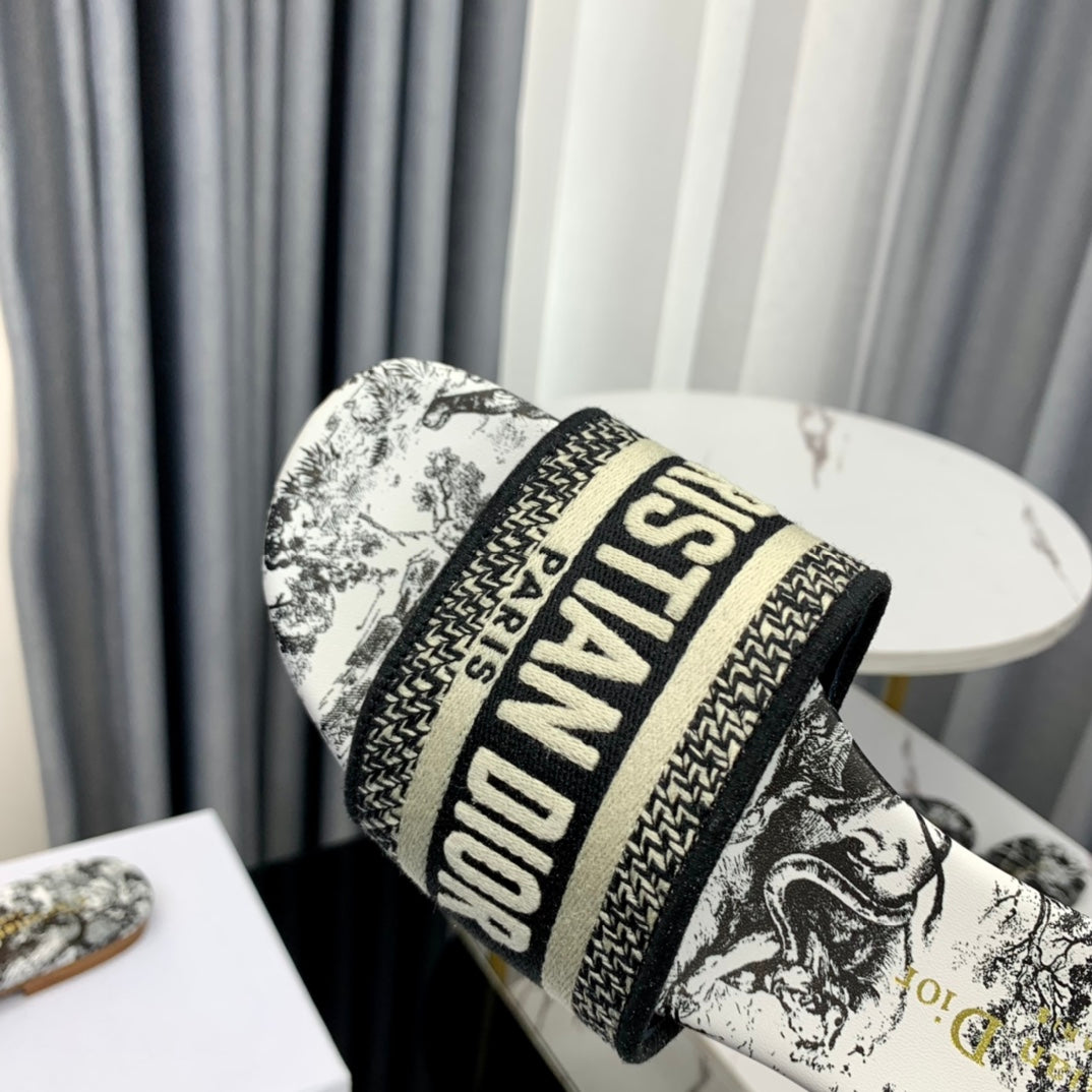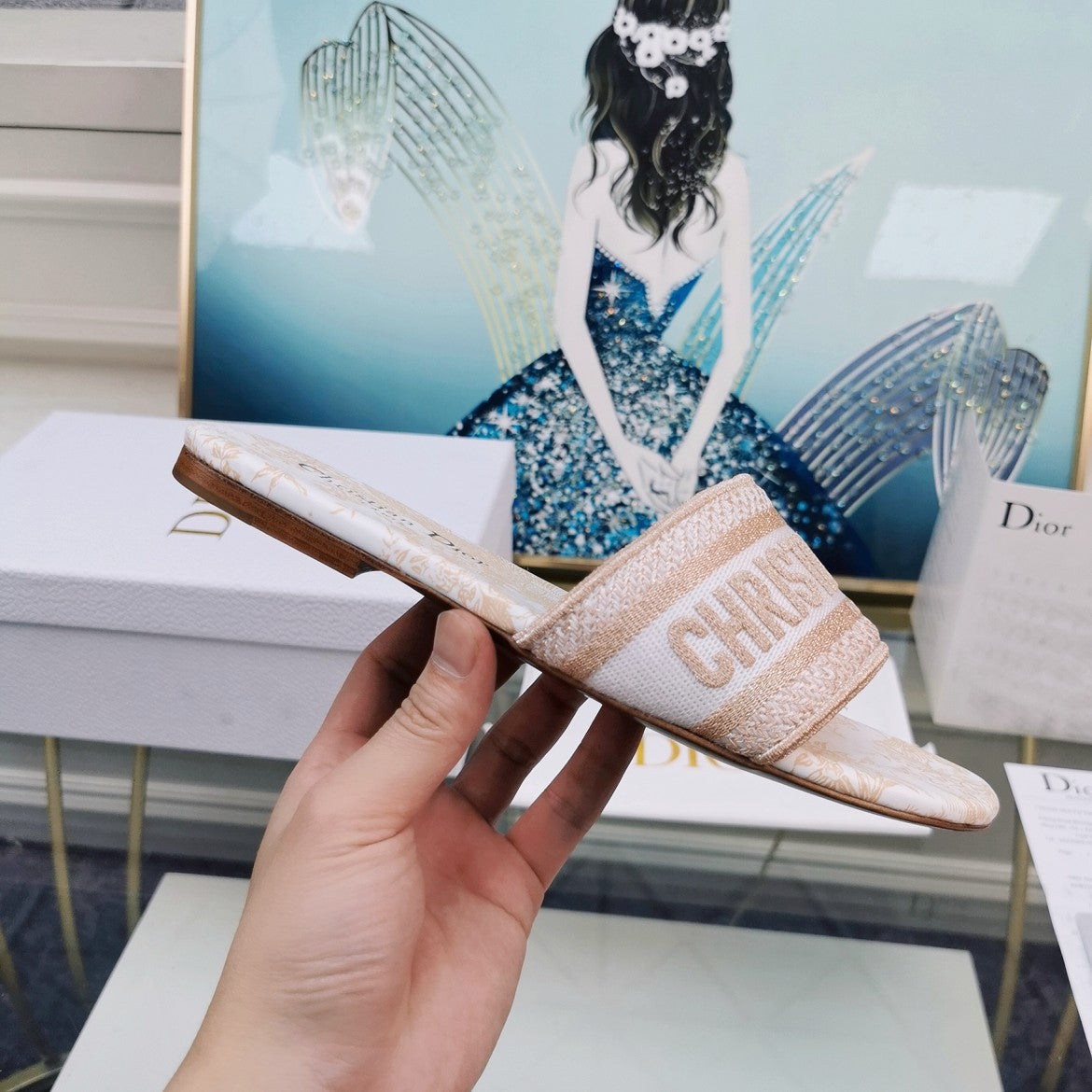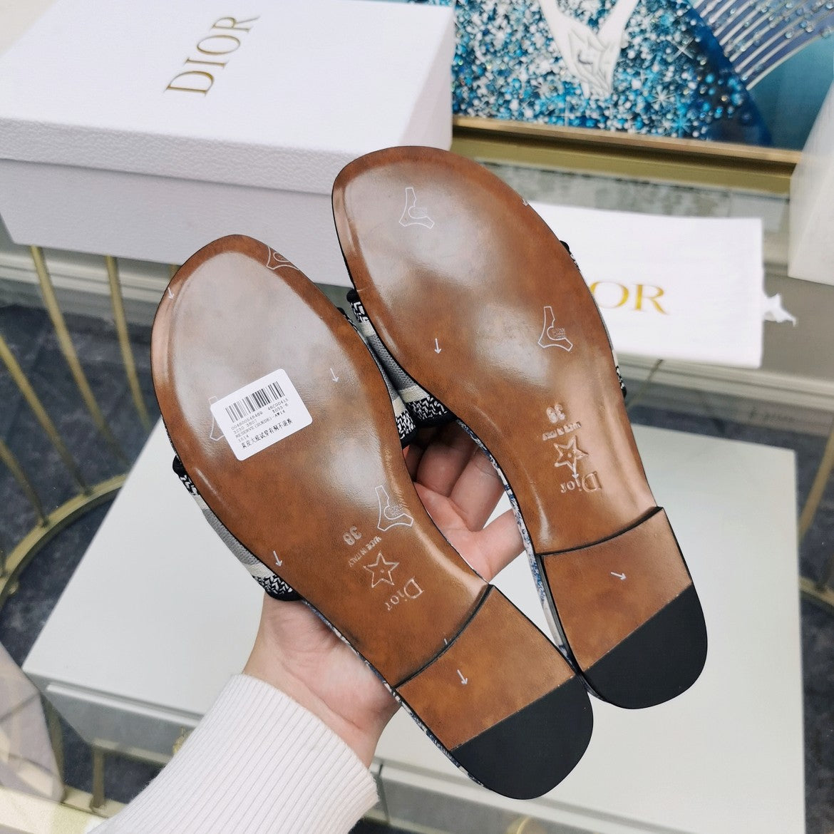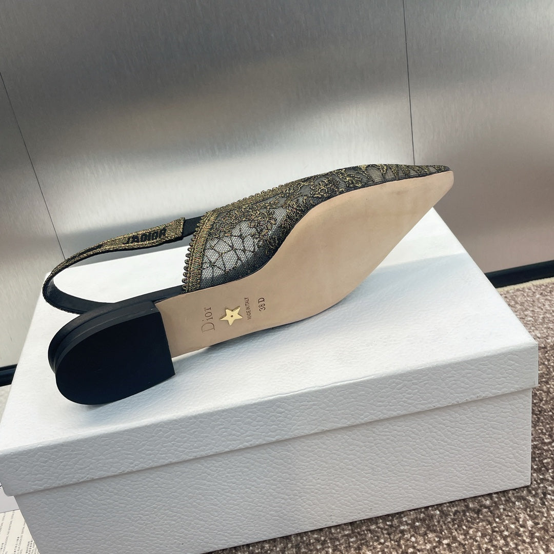 cd slingback flat embroidered cotton white calfskin resin pearl