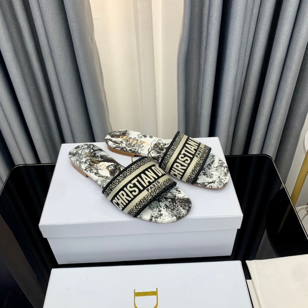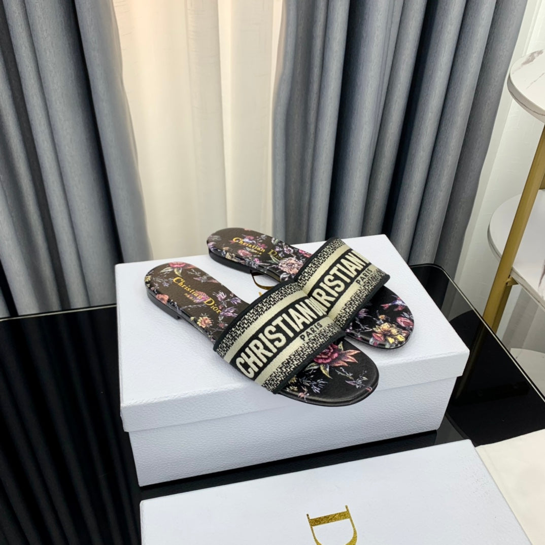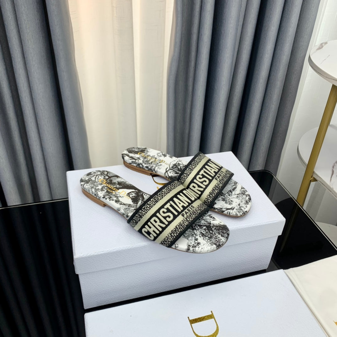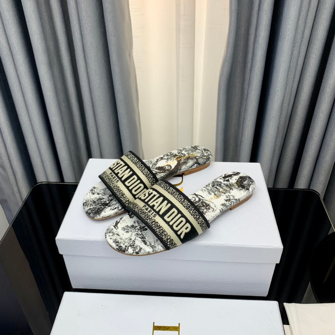 cd slingback flat embroidered cotton white calfskin resin pearl