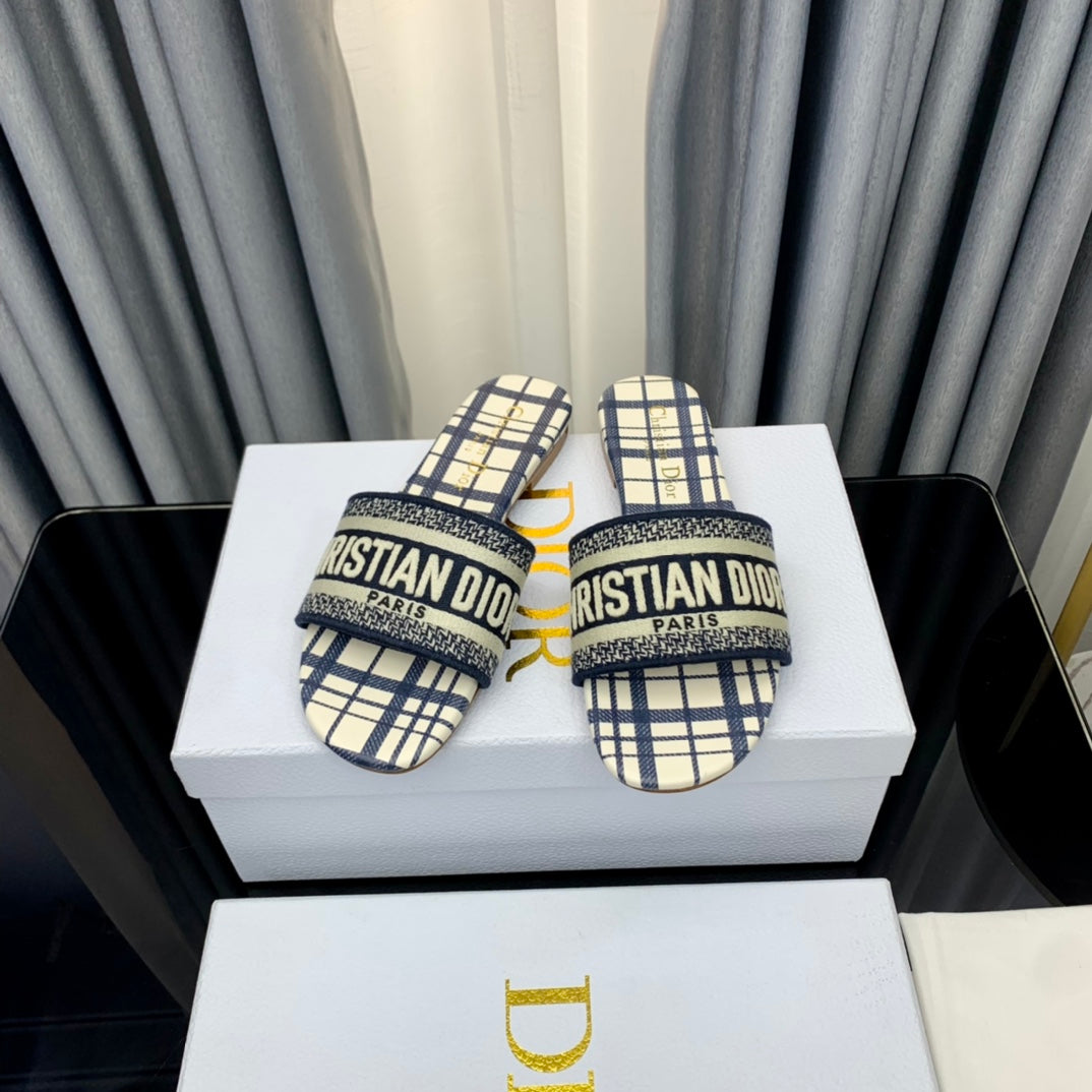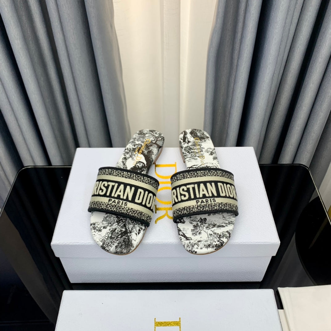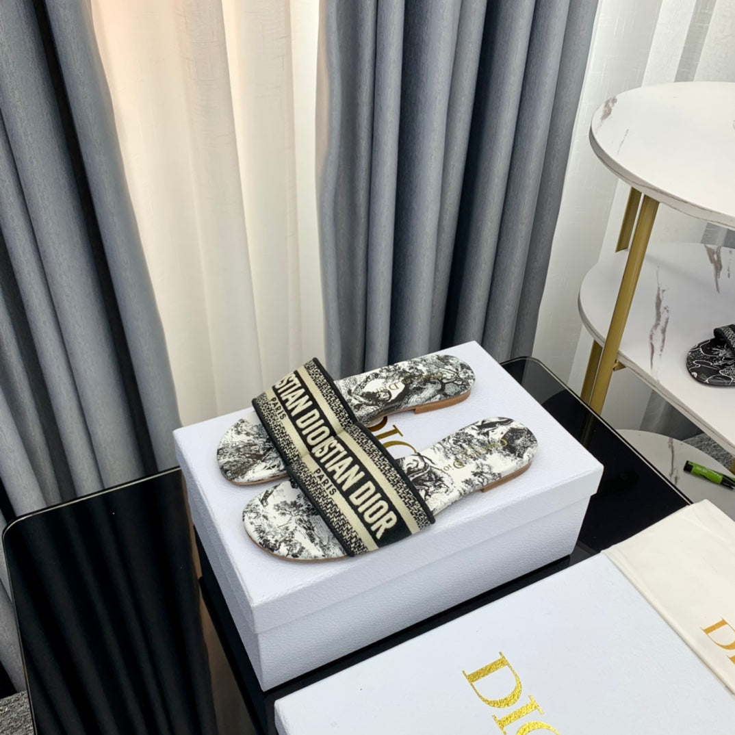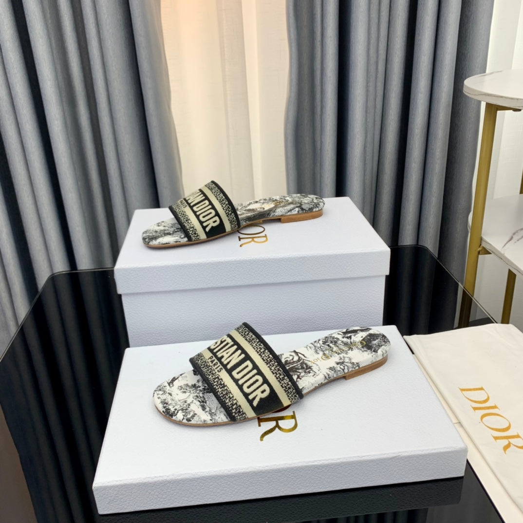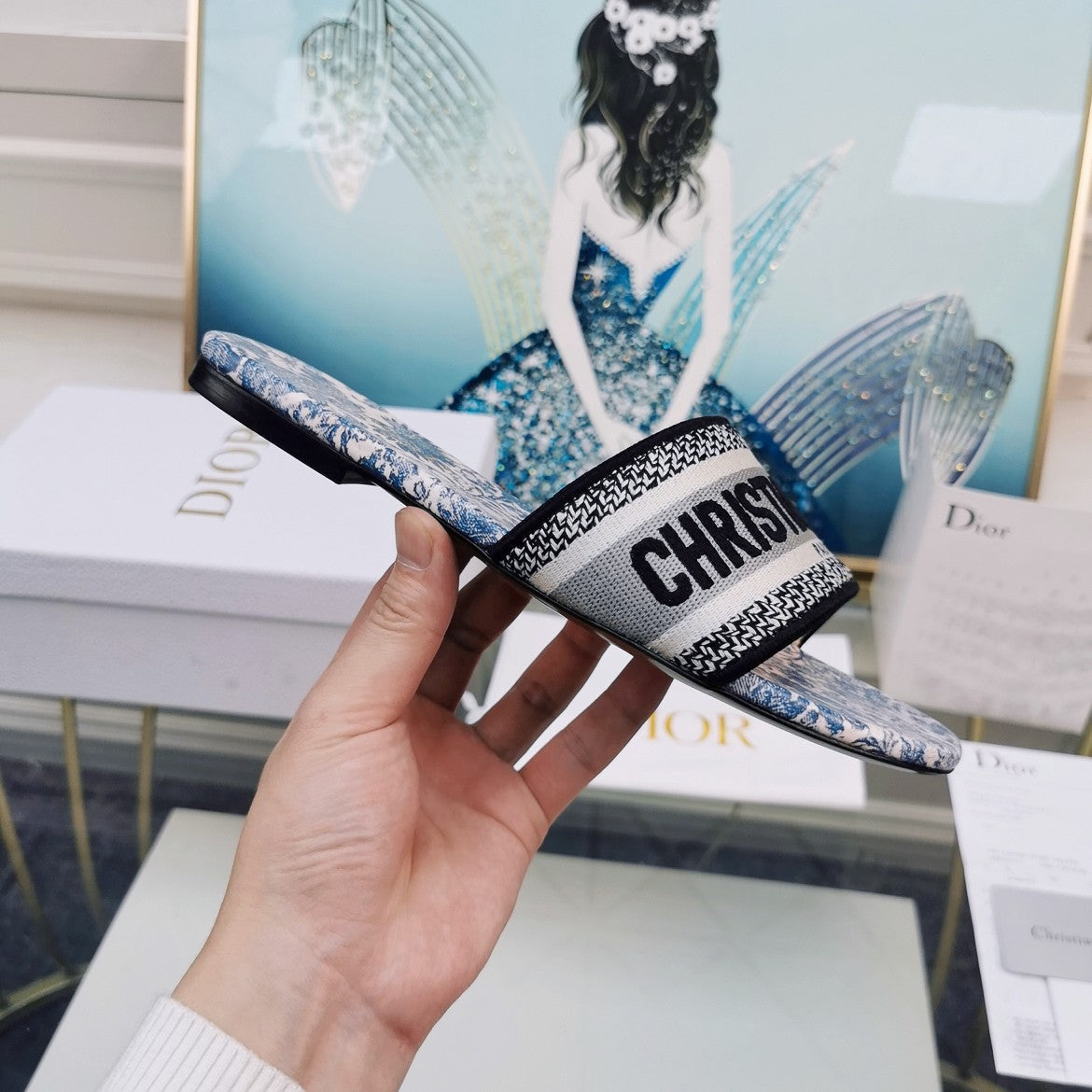 cd slingback flat embroidered cotton white calfskin resin pearl