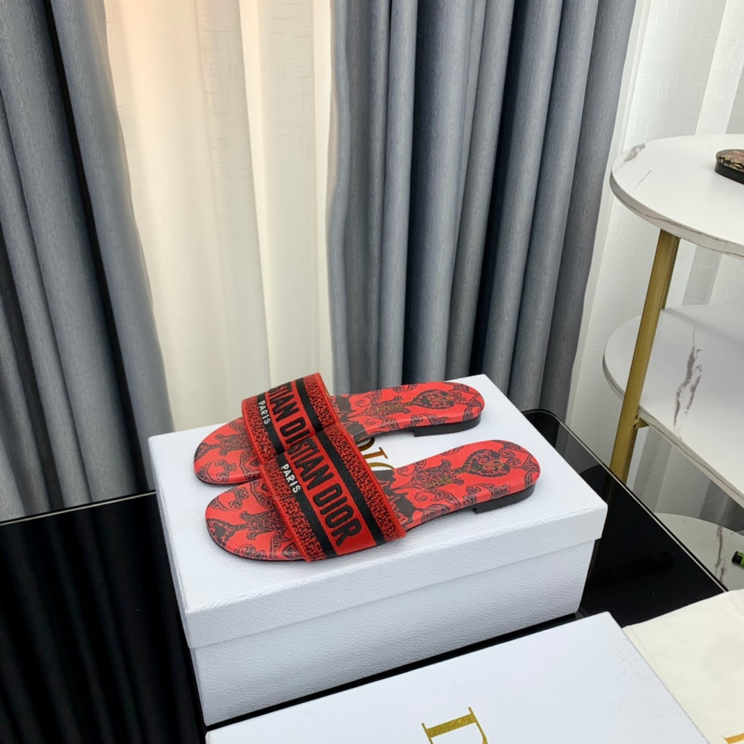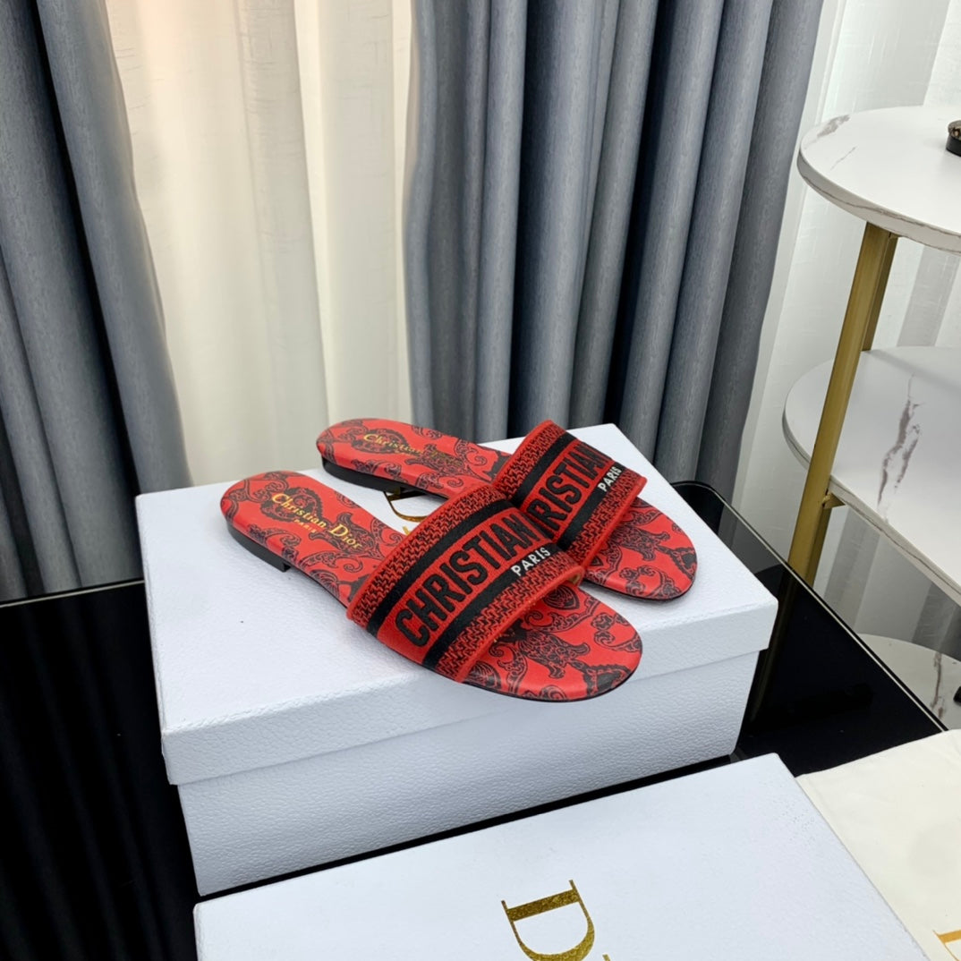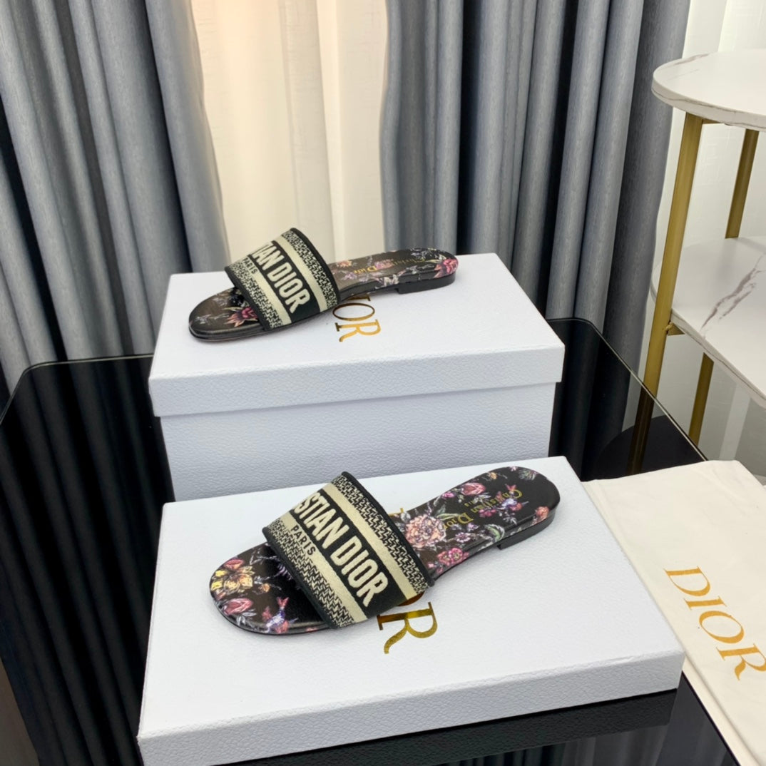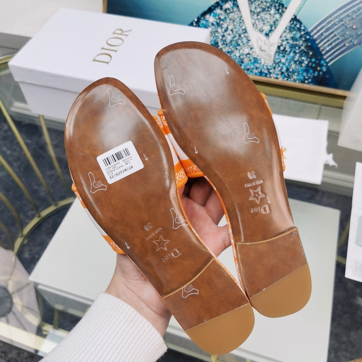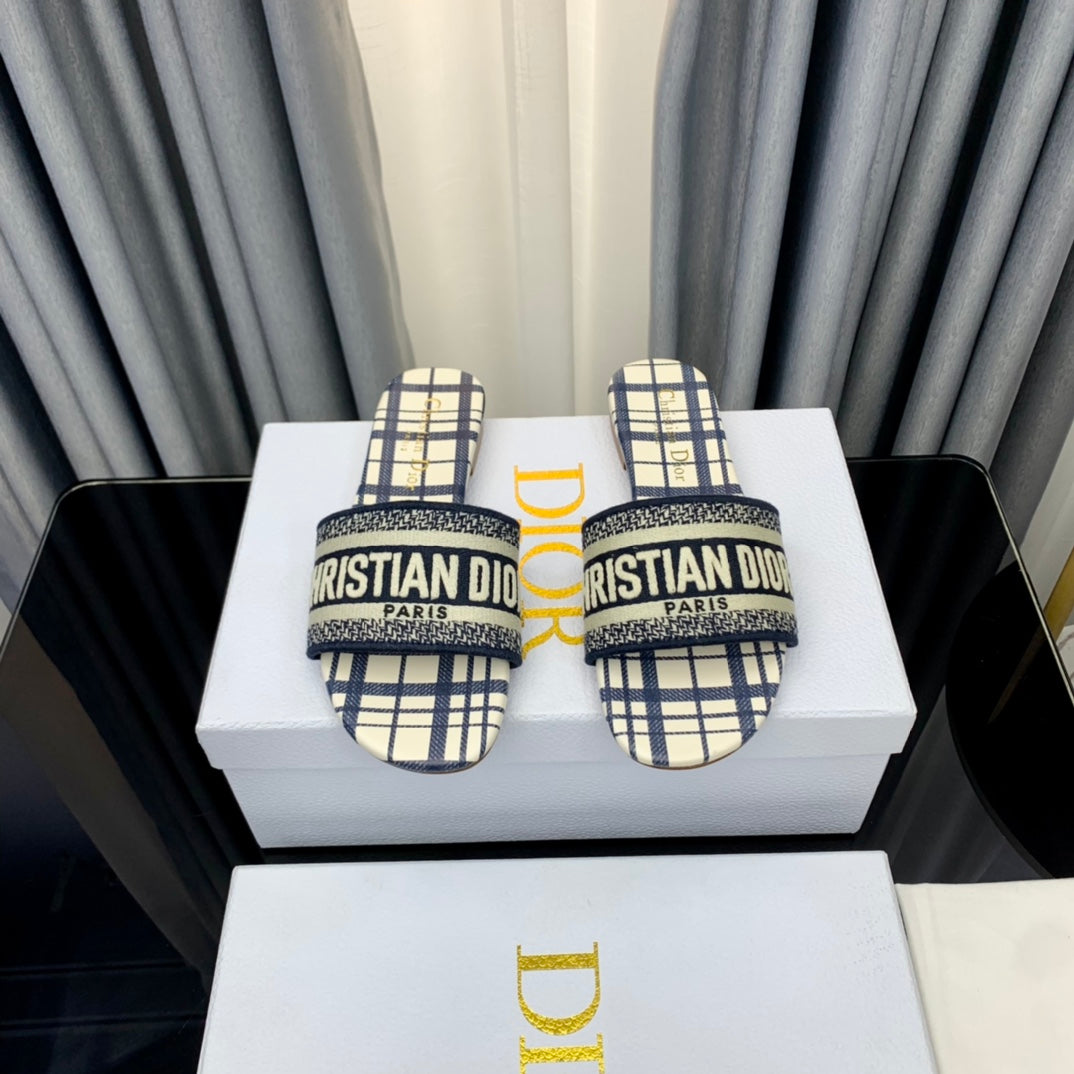 cd slingback flat embroidered cotton white calfskin resin pearl