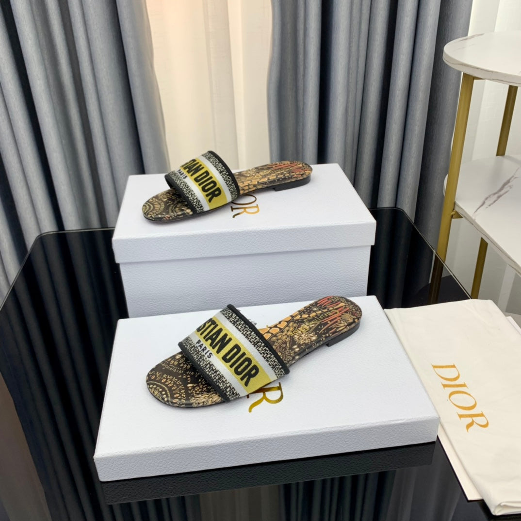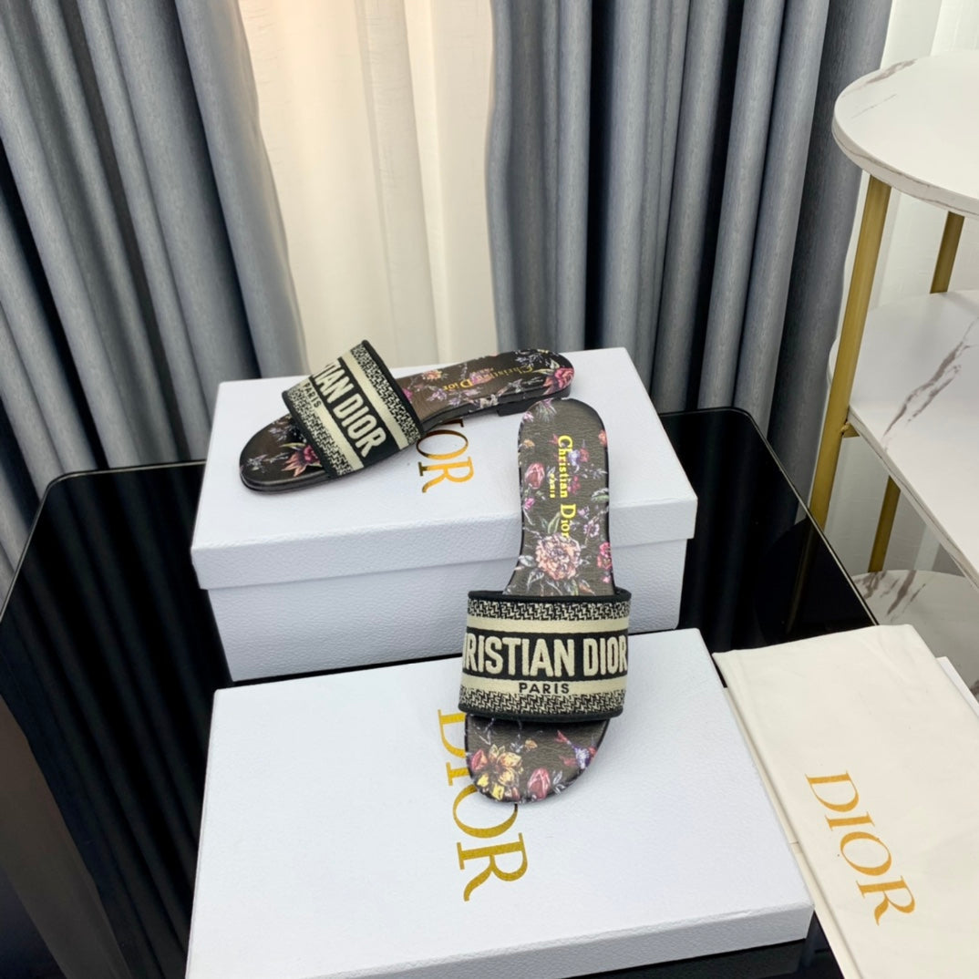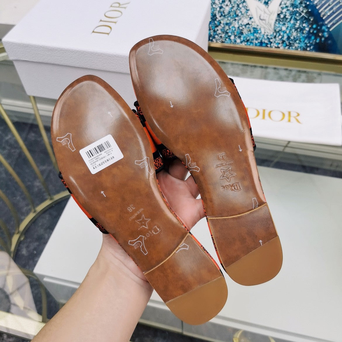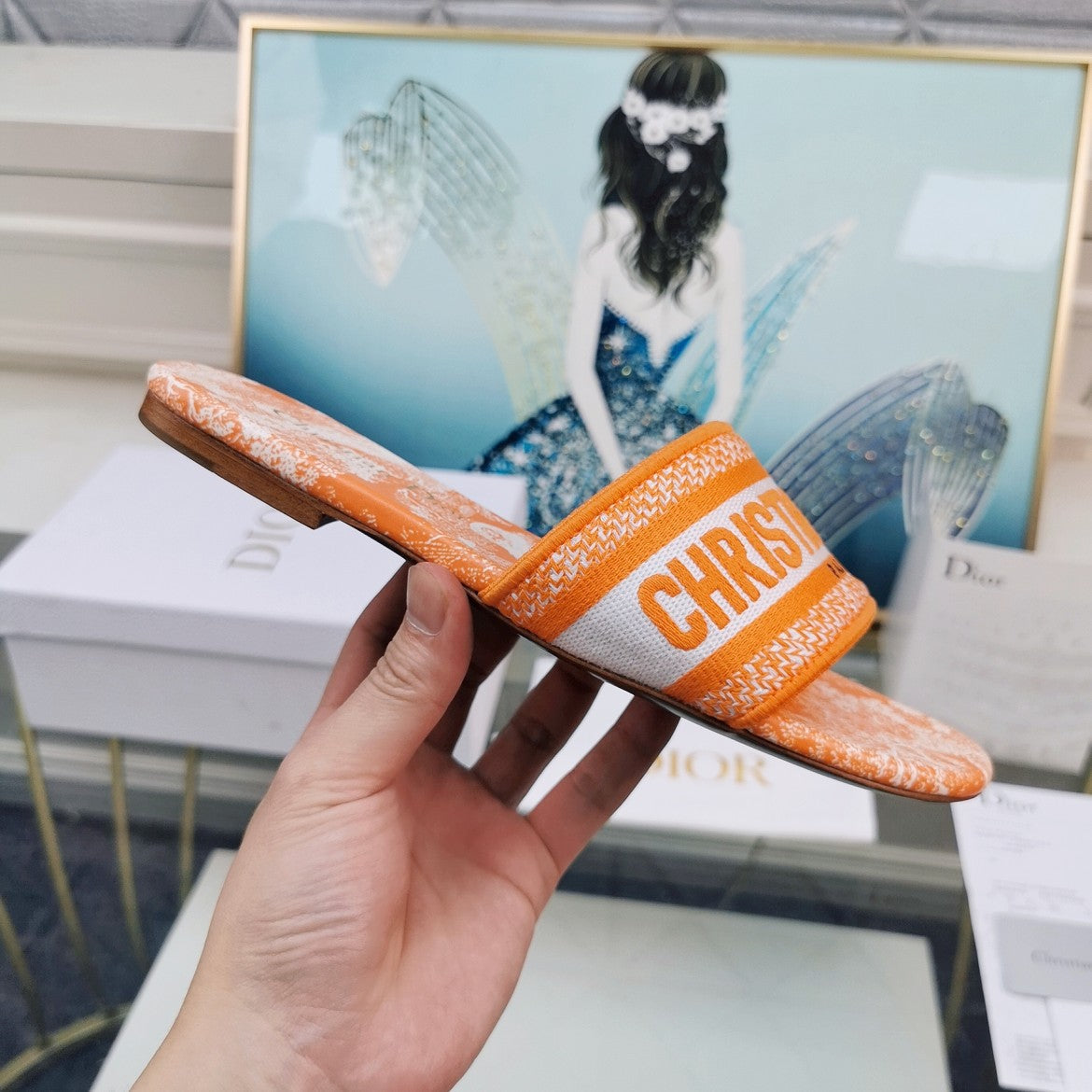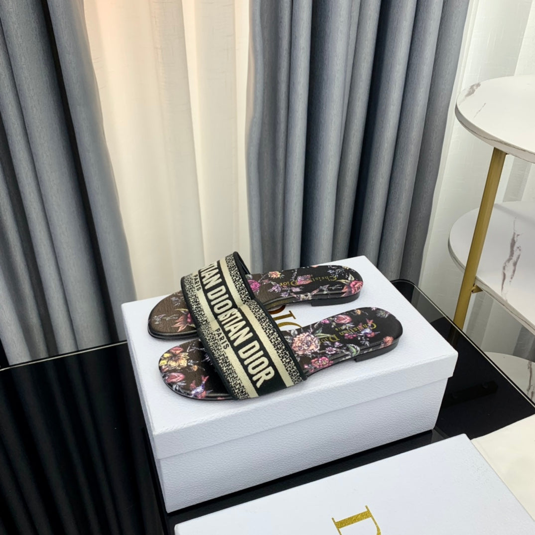 cd slingback flat embroidered cotton white calfskin resin pearl