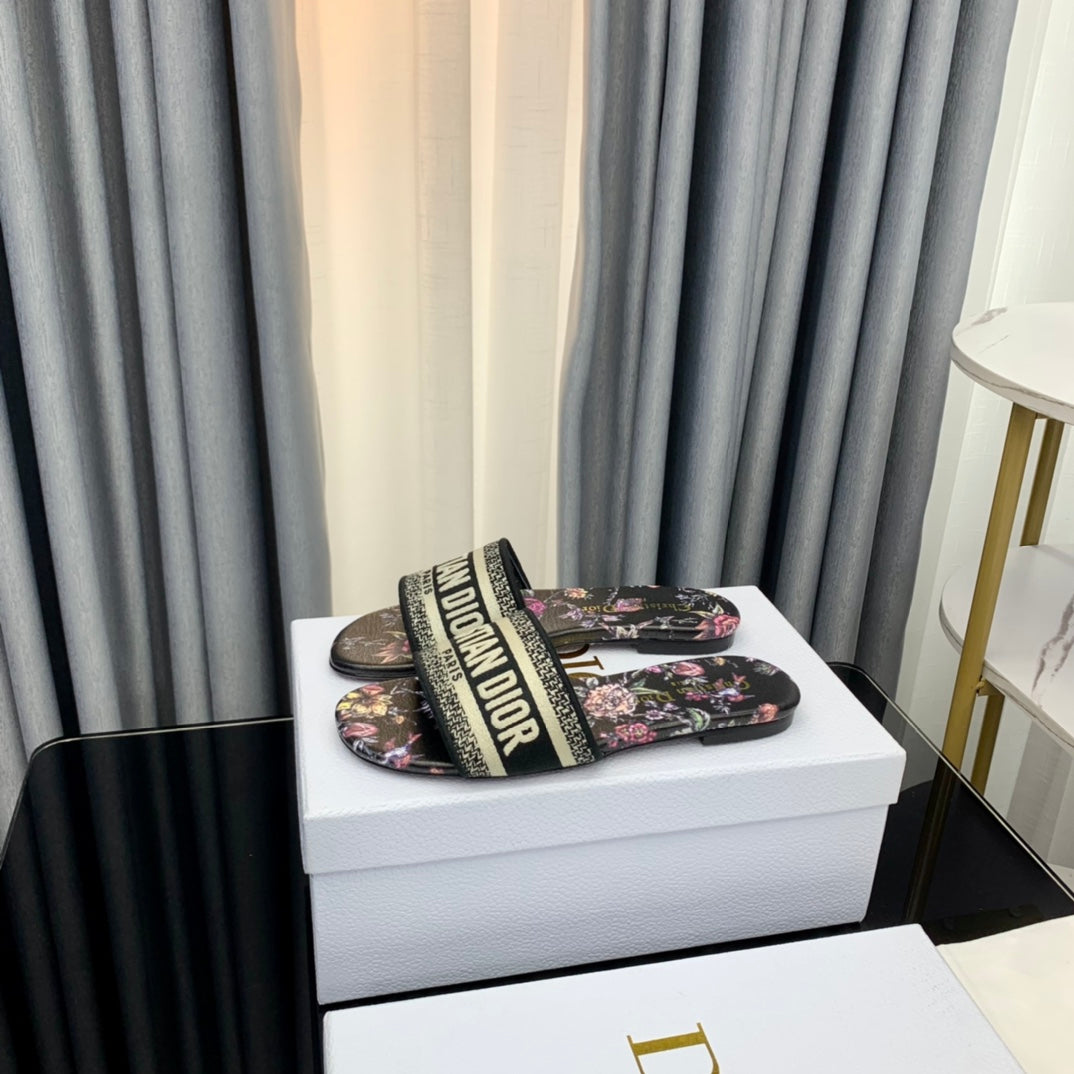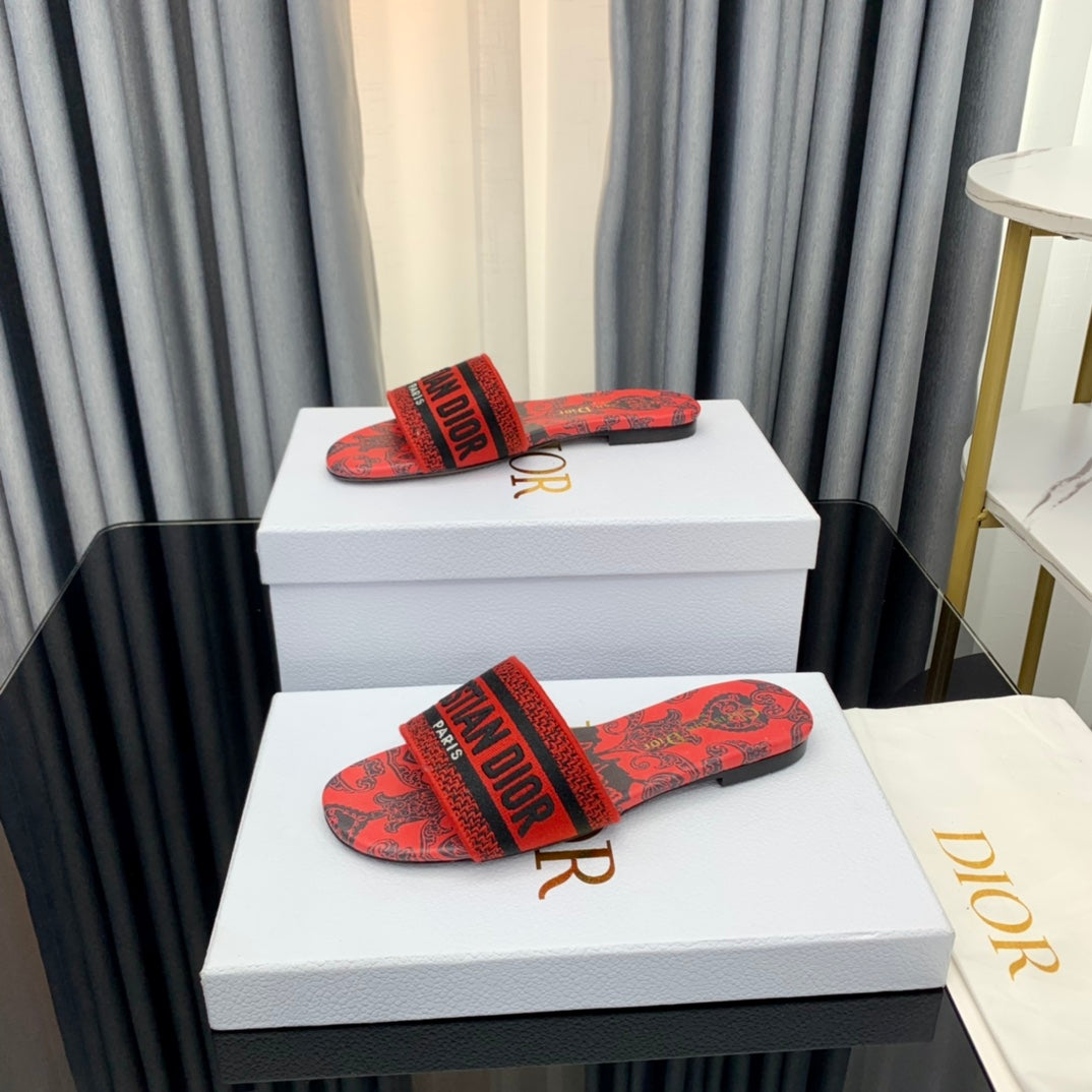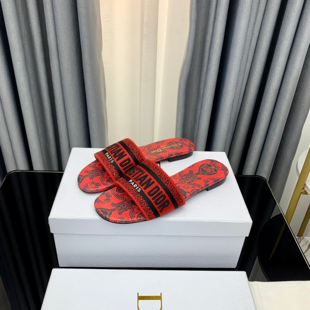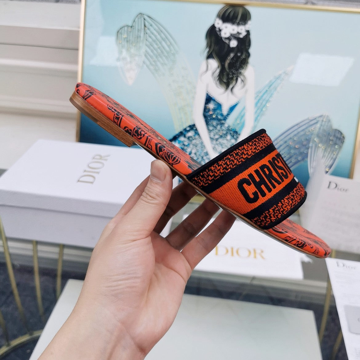 cd slingback flat embroidered cotton white calfskin resin pearl