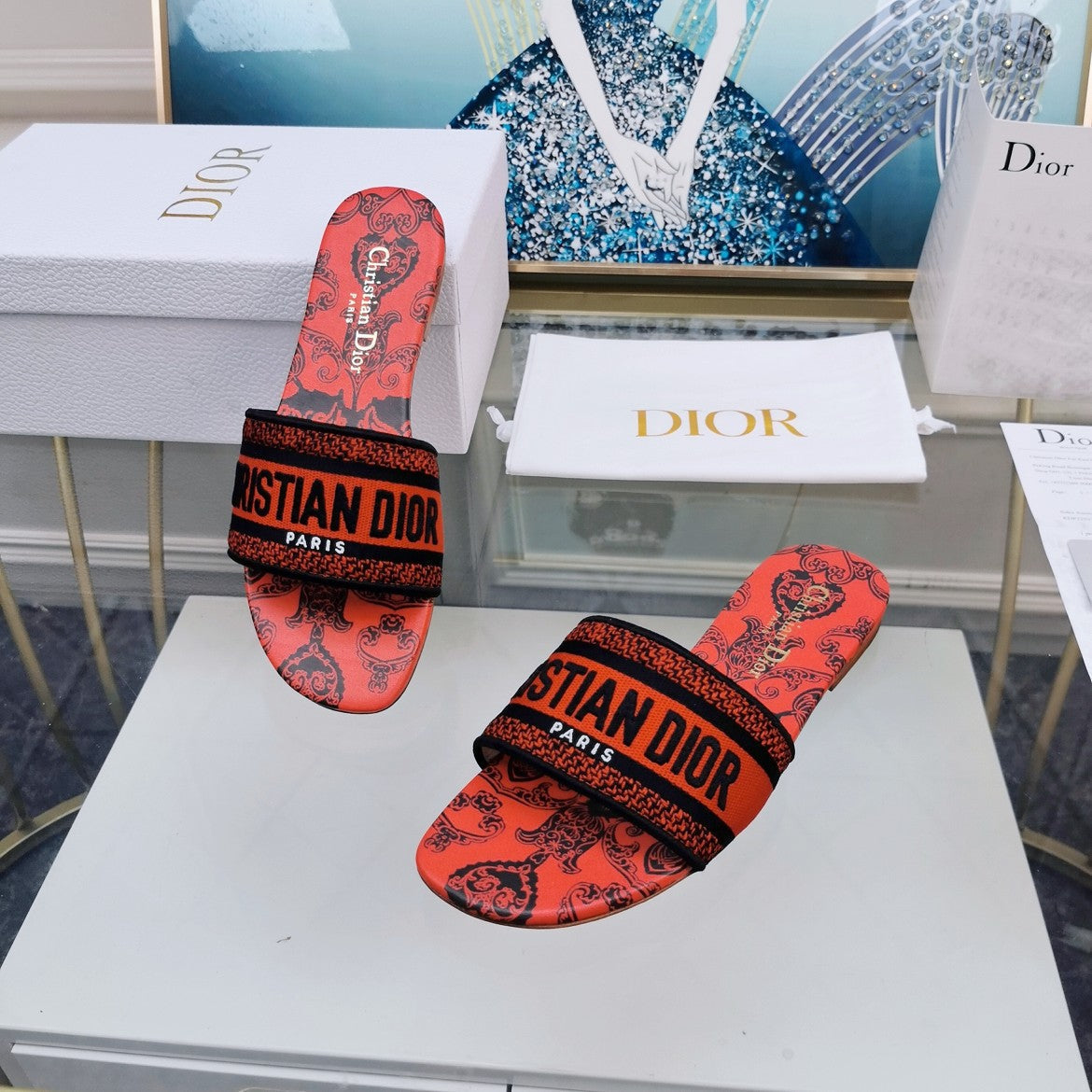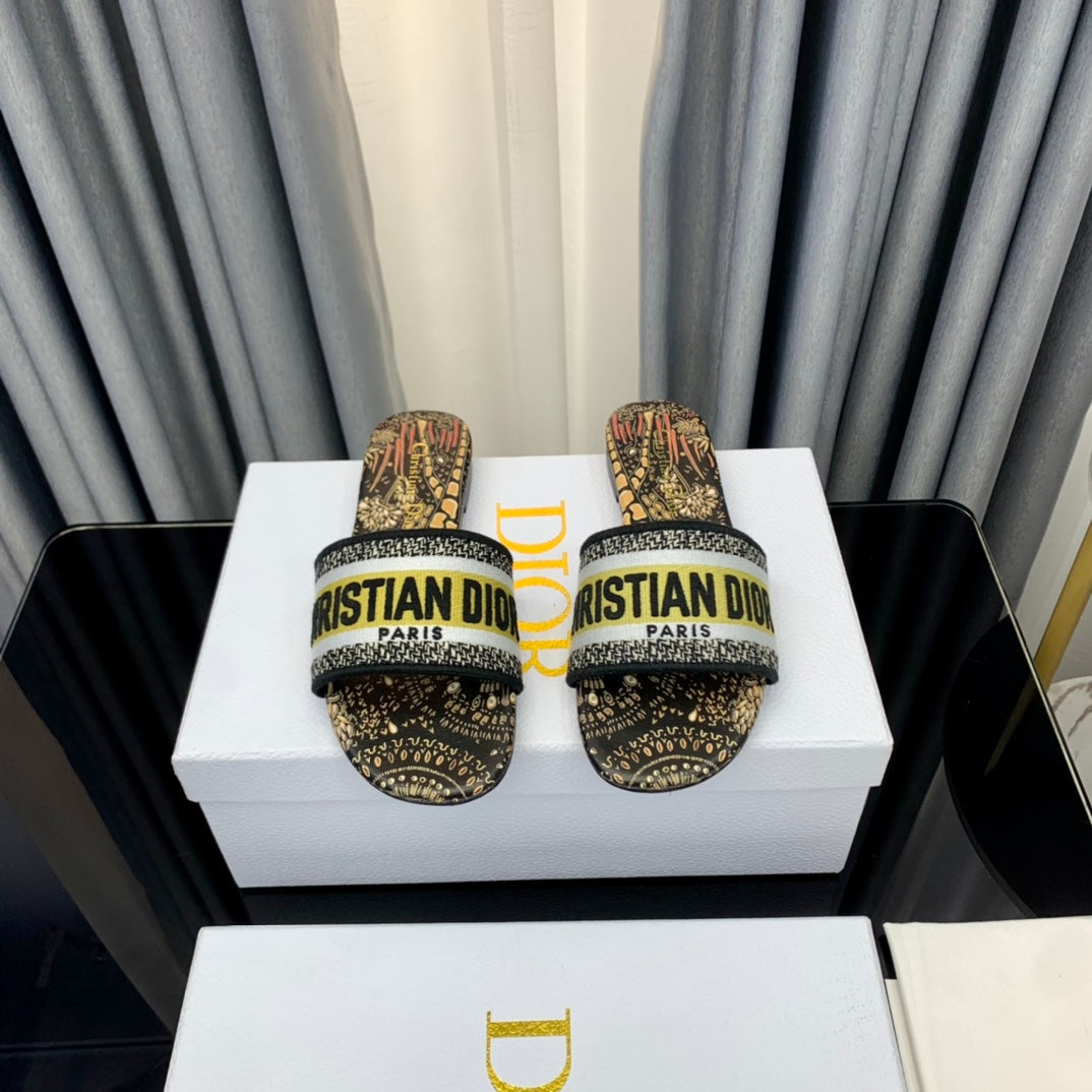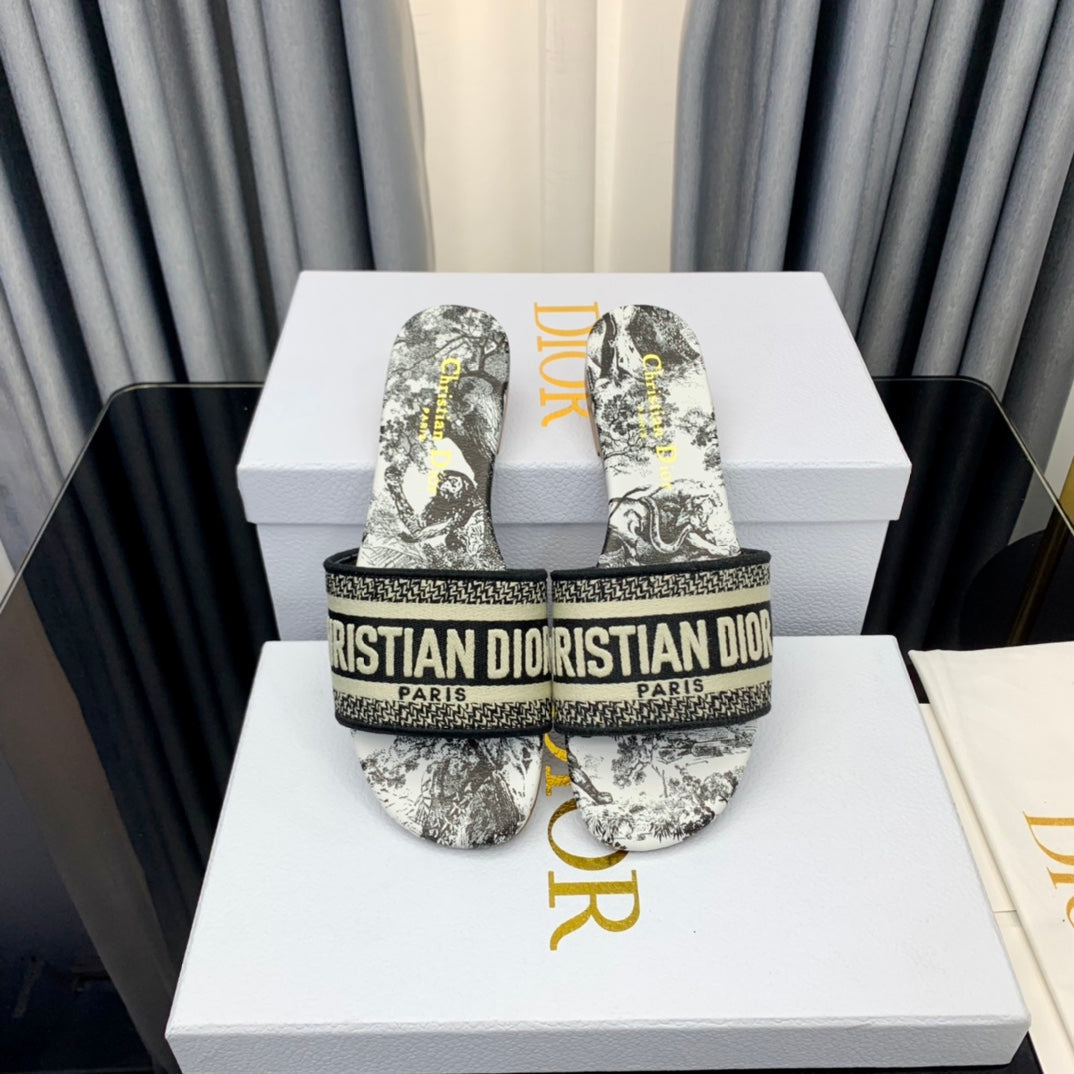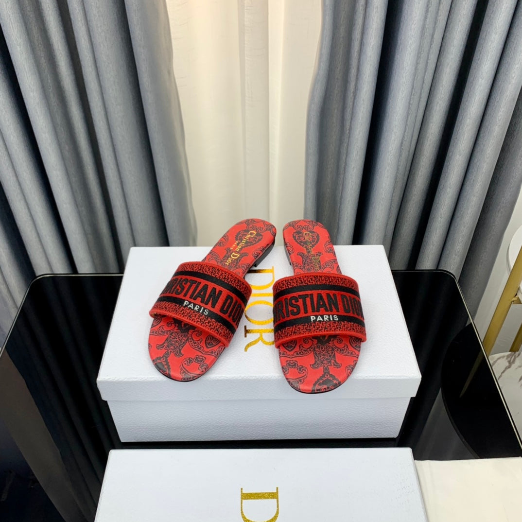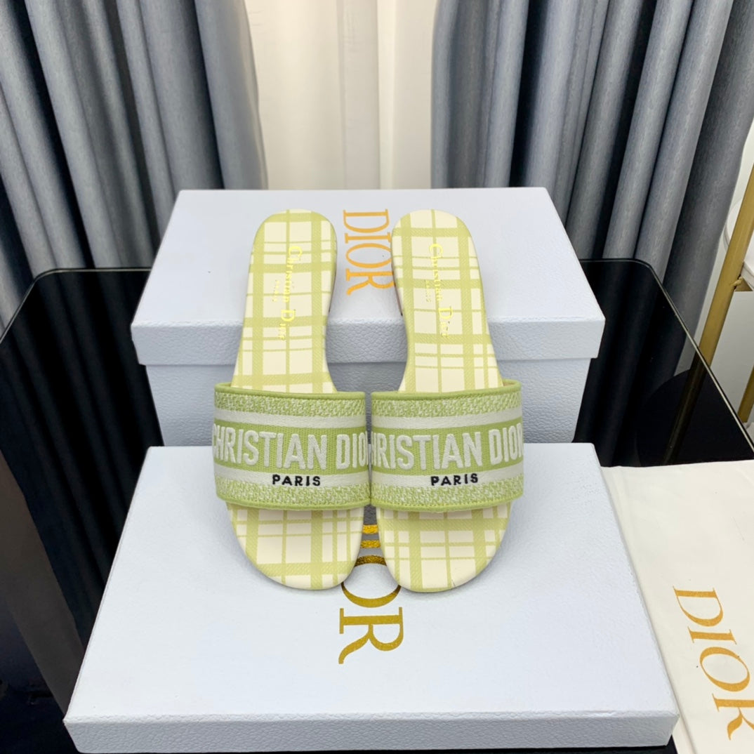cd slingback flat embroidered cotton white calfskin resin pearl