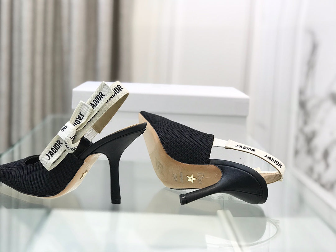 cd slingback pumps 95 black embroidered cotton
