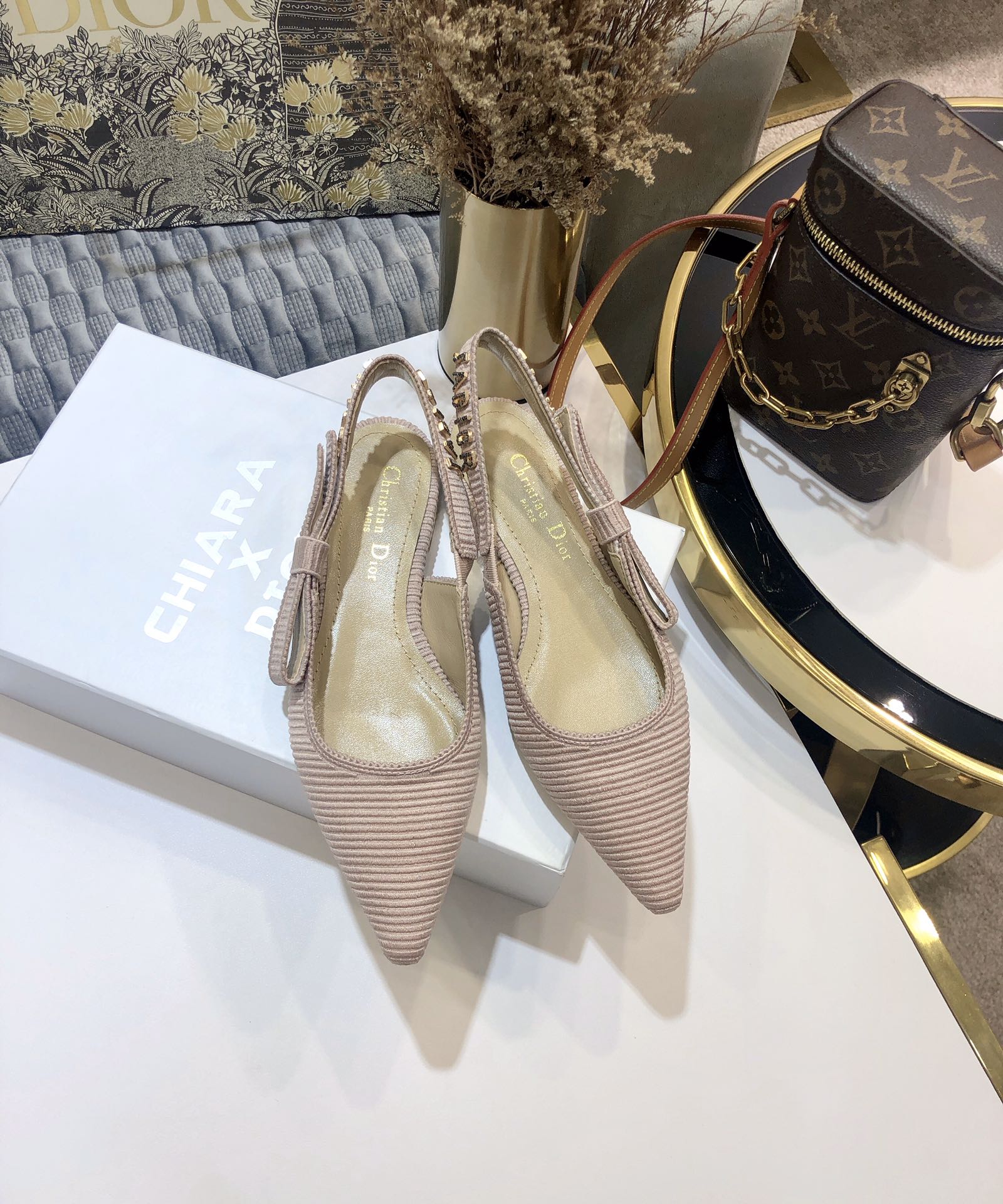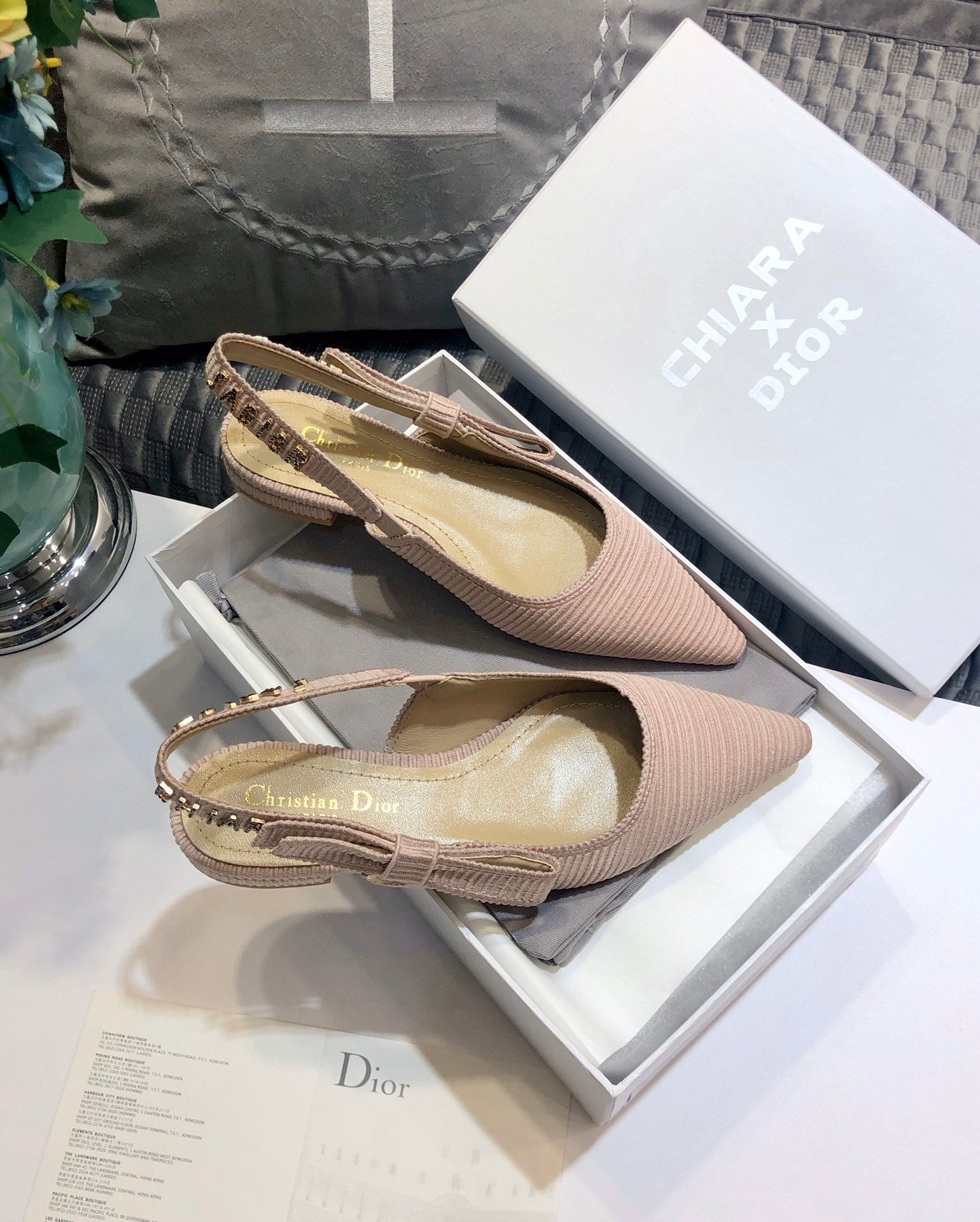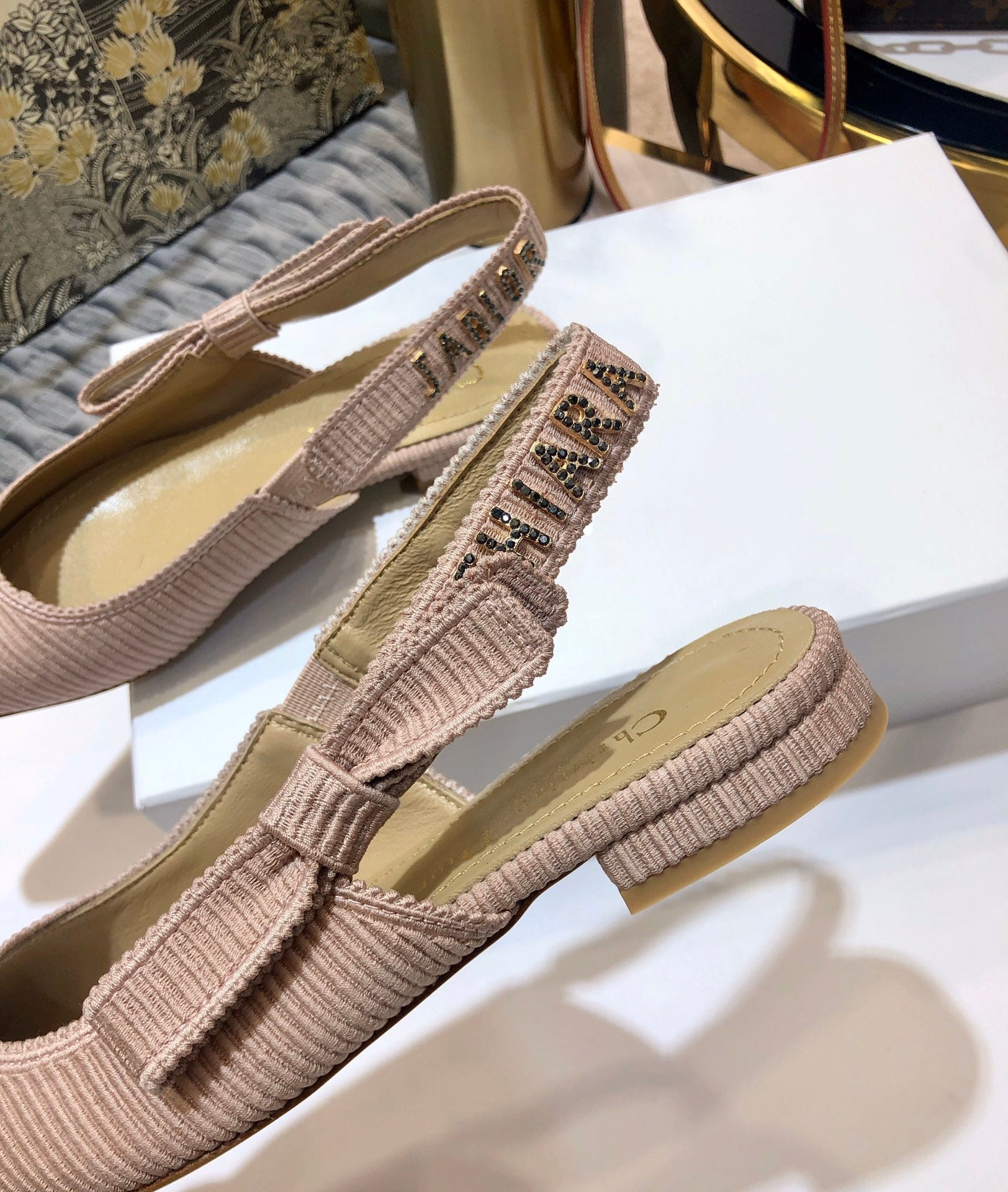 JAdior slingback flat all rose canelle embroidered cotton