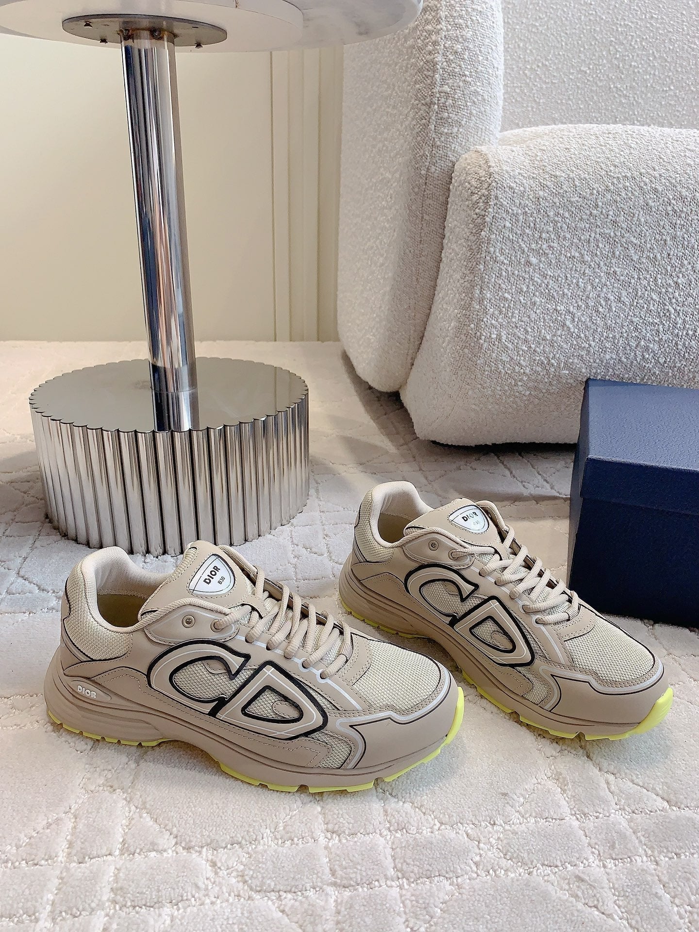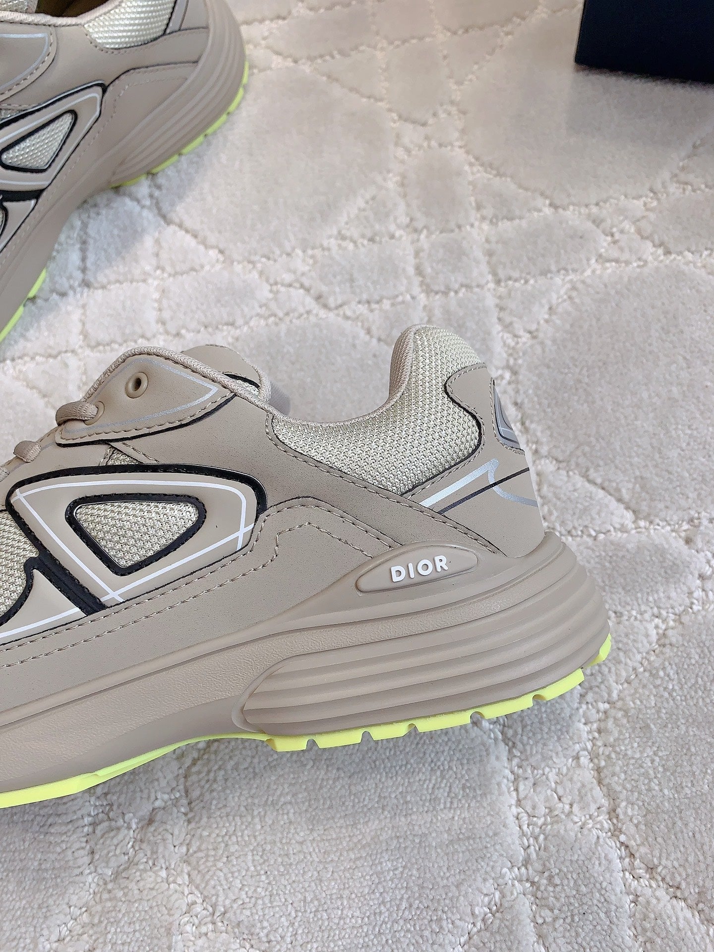 CD B30 Sneaker Dark Beige Mix Yellow Polyester Mesh Fabric And Calfskin