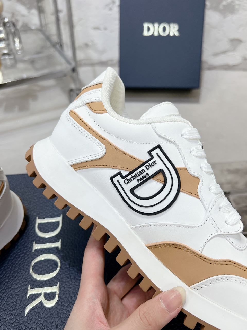 C'est Dior Sneaker 35mm White Mix Dark Beige Cowhide