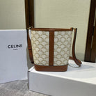BUCKET 30 IN WHITE TRIOMPHE CANVAS AND RED BROWN CALFSKIN TRIM