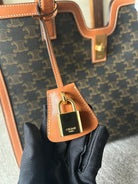 CABAS 37 IN BLACK TRIOMPHE CANVAS AND BRONZE BROWN CALFSKIN TRIM GOLD LOCK