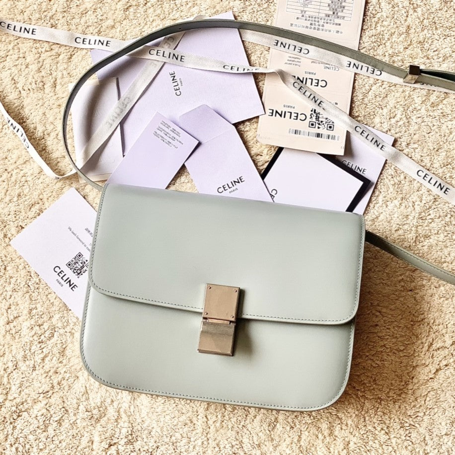 CELINE MEDIUM CLASSIQUE BAG 24CM LIGHT GREEN CALFSKIN