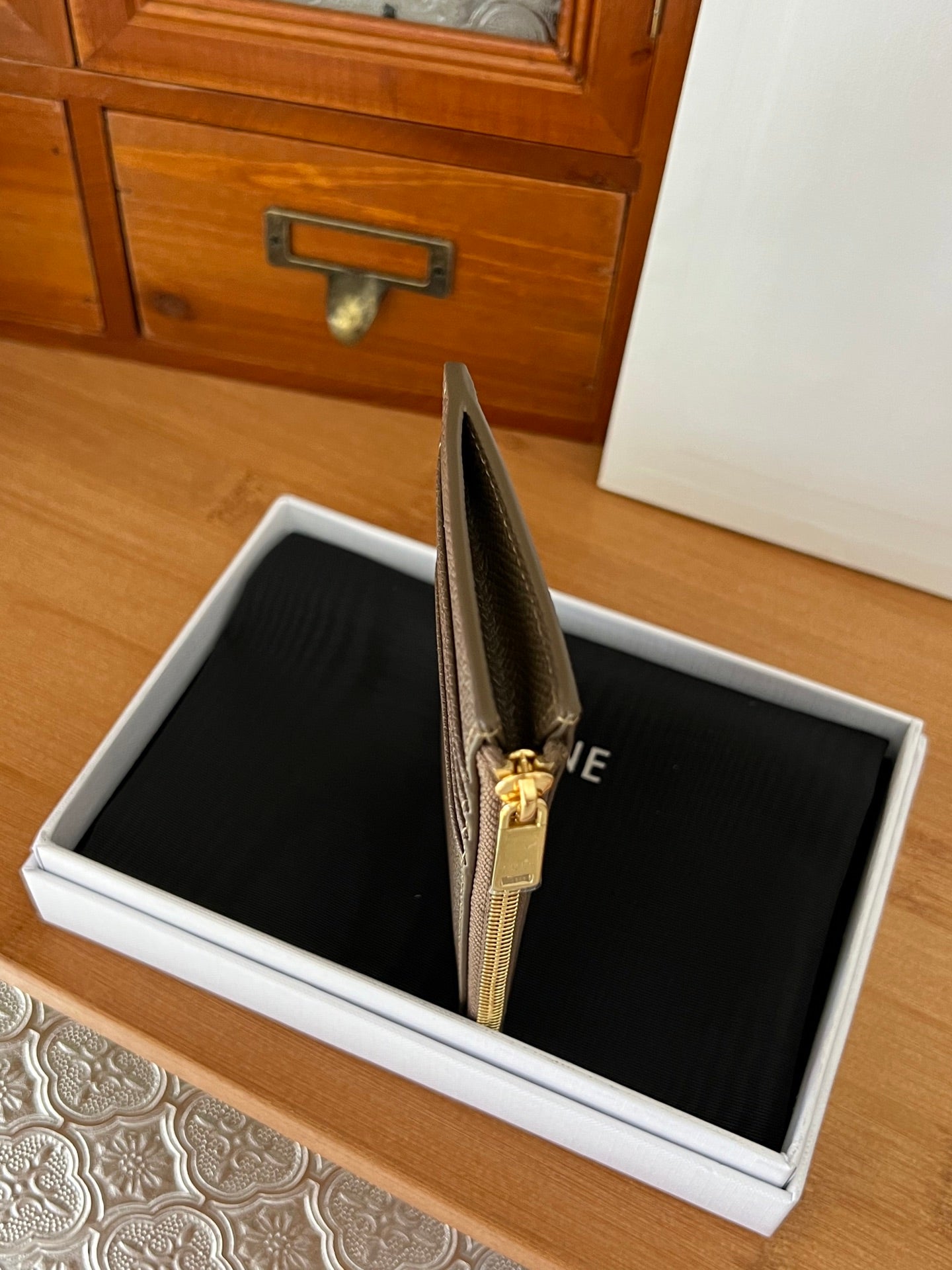 ESSENTIALS Zippered Compact Card Holder Dark Brown Cowhide