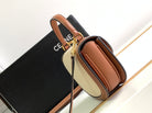 - Color: TEXTILE AND CALFSKIN TAN, Gold hardware