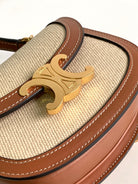 TEEN CHAIN BESACE TRIOMPHE 15.5CM TEXTILE AND CALFSKIN TAN