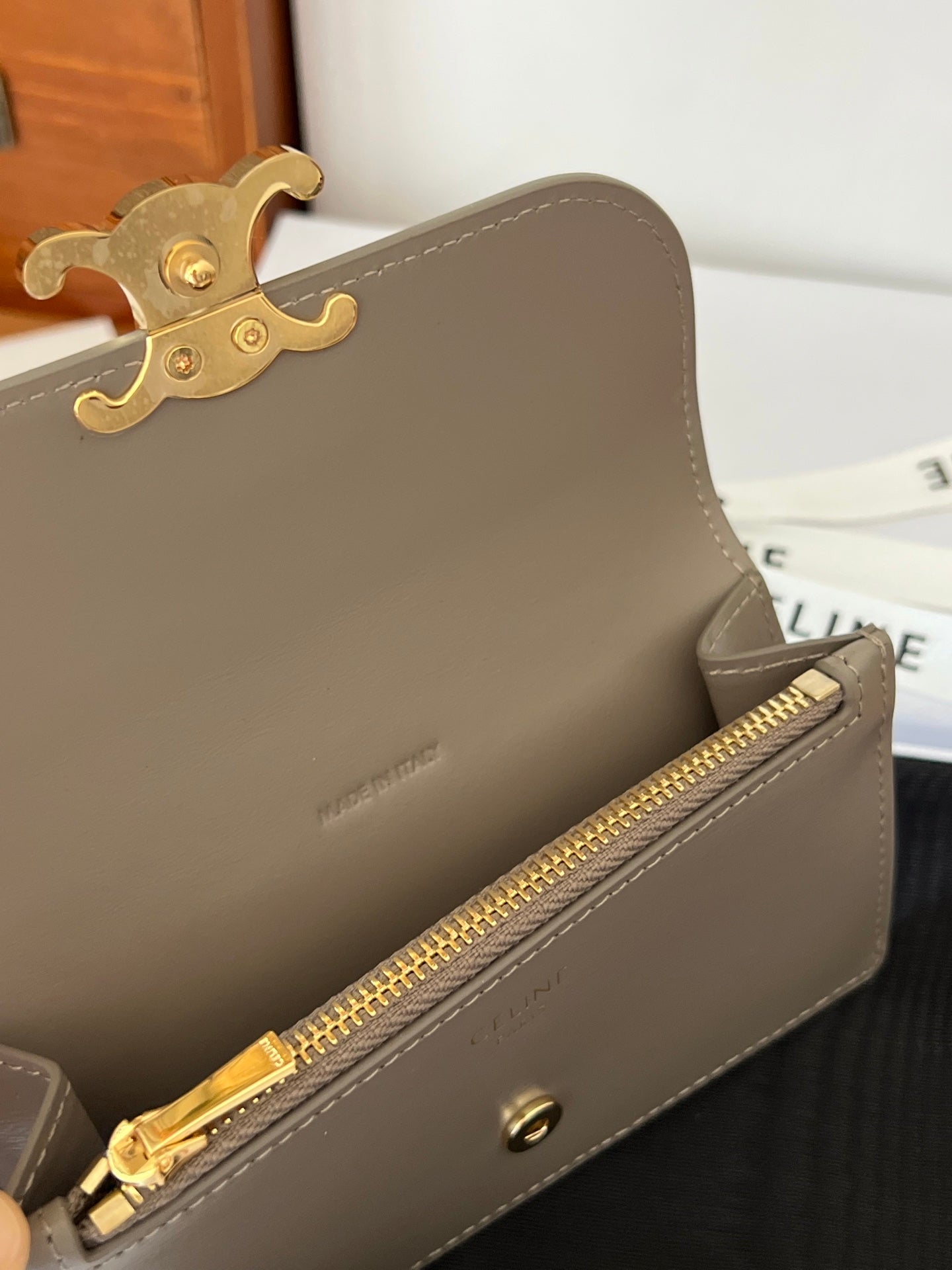 TRIOMPHE 10 Flap Wallet Card Holder 13cm Modern Taupe Shiny Cafskin