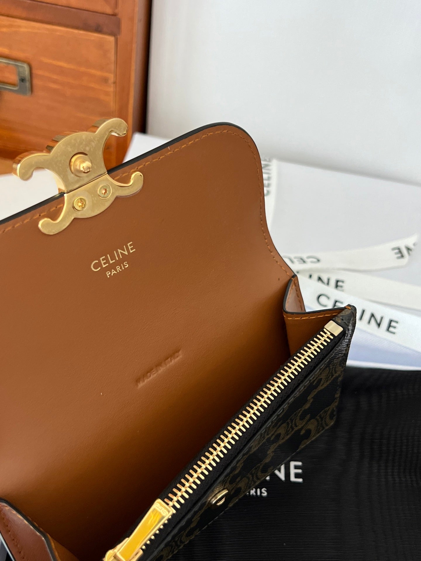 TRIOMPHE 10 Flap Wallet Card Holder 13cm Tan Shiny Cafskin
