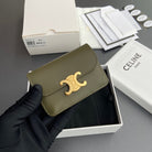 TRIOMPHE 10i583 Flap Card Holder Olive Green Shiny Cowhide