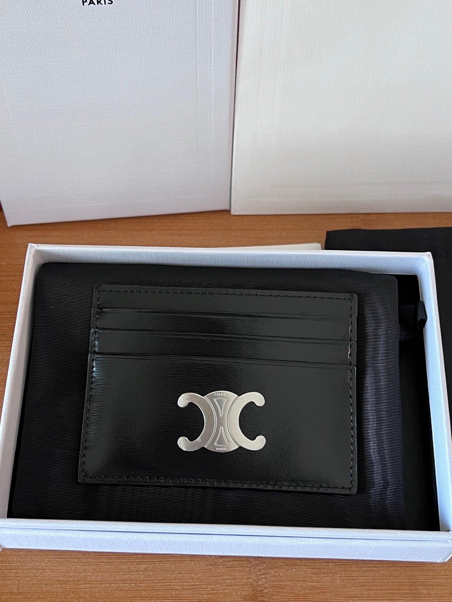 TRIOMPHE Card Holder Black Sliver Cowhide& Fabric