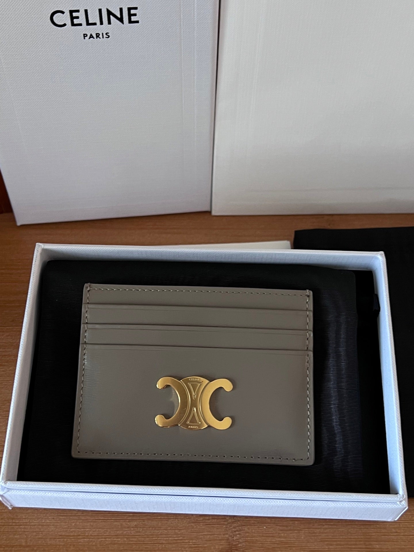 TRIOMPHE Card Holder Grey Cowhide& Fabric GHW