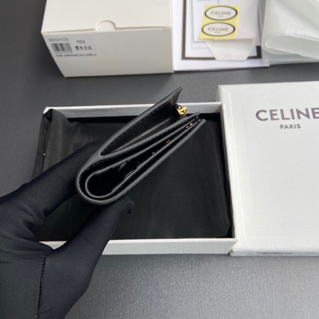 TRIOMPHE Compact Wallet Charms Black Grained Cowhide