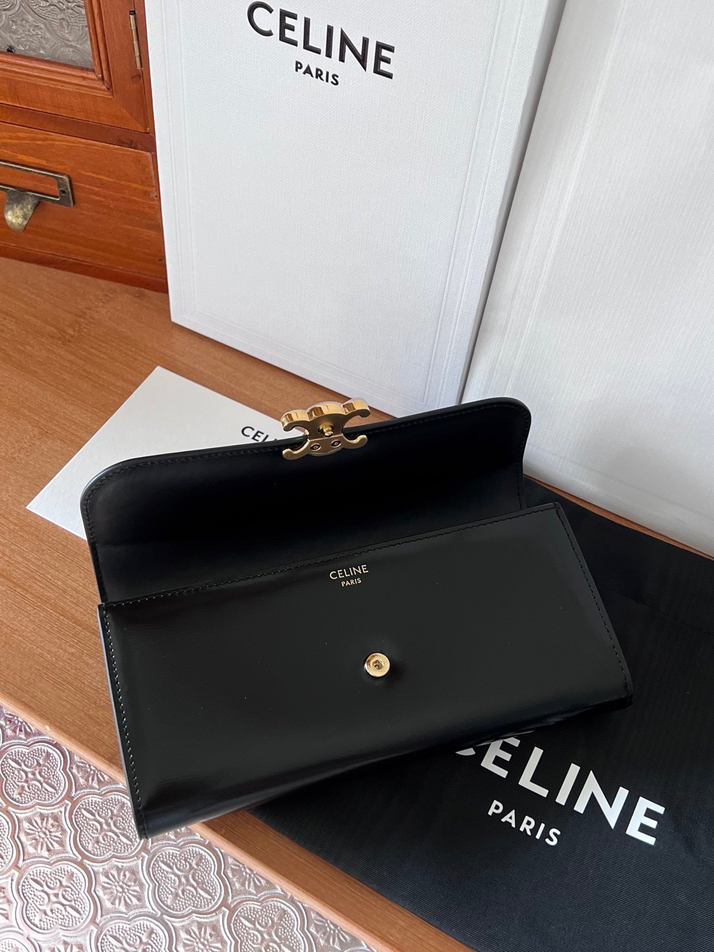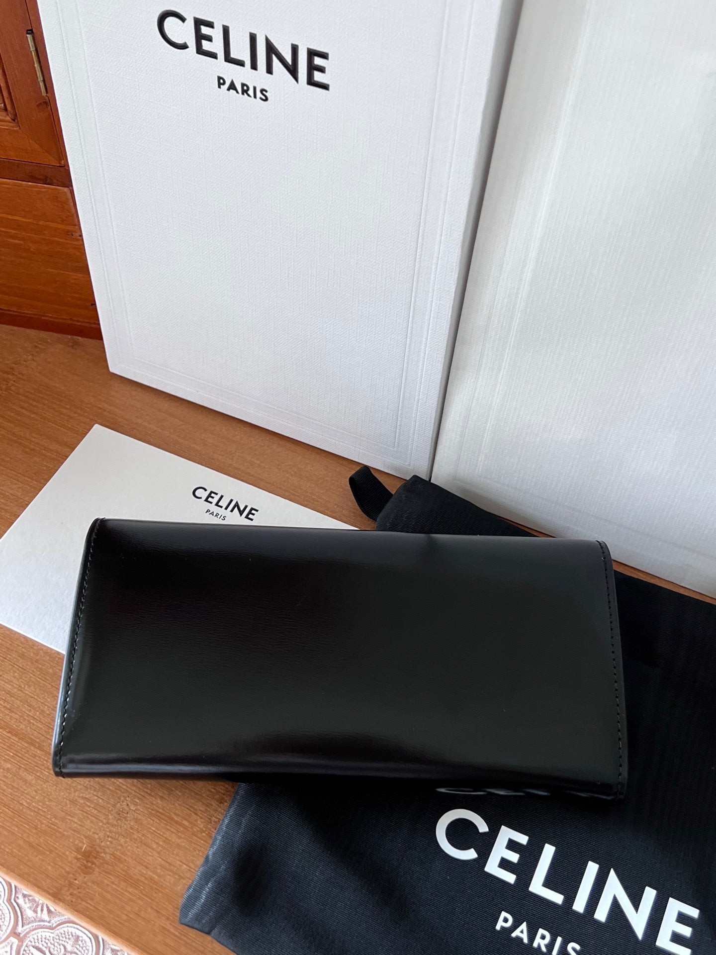 TRIOMPHE Flap Wallet Card Holder 19cm Black Shiny Cafskin