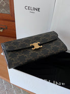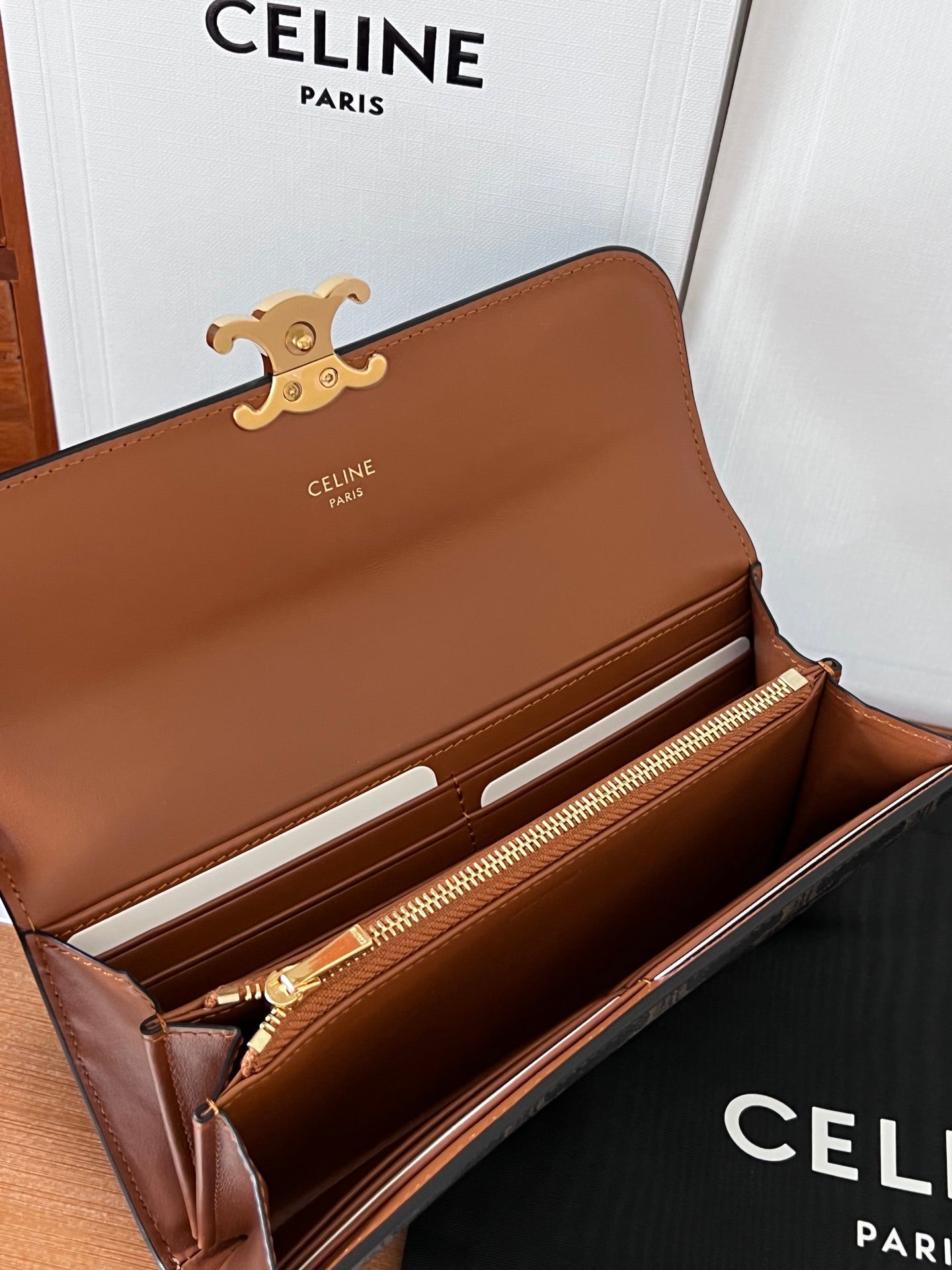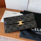 TRIOMPHE Flap Wallet Card Holder 19cm Tan Black Cafskin