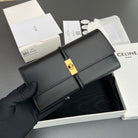 TRIOMPHE Large Wallet 16 Black Satinated Cowhide