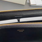 TRIOMPHE Long Zipper Closure Bag Black Shiny Cowhide