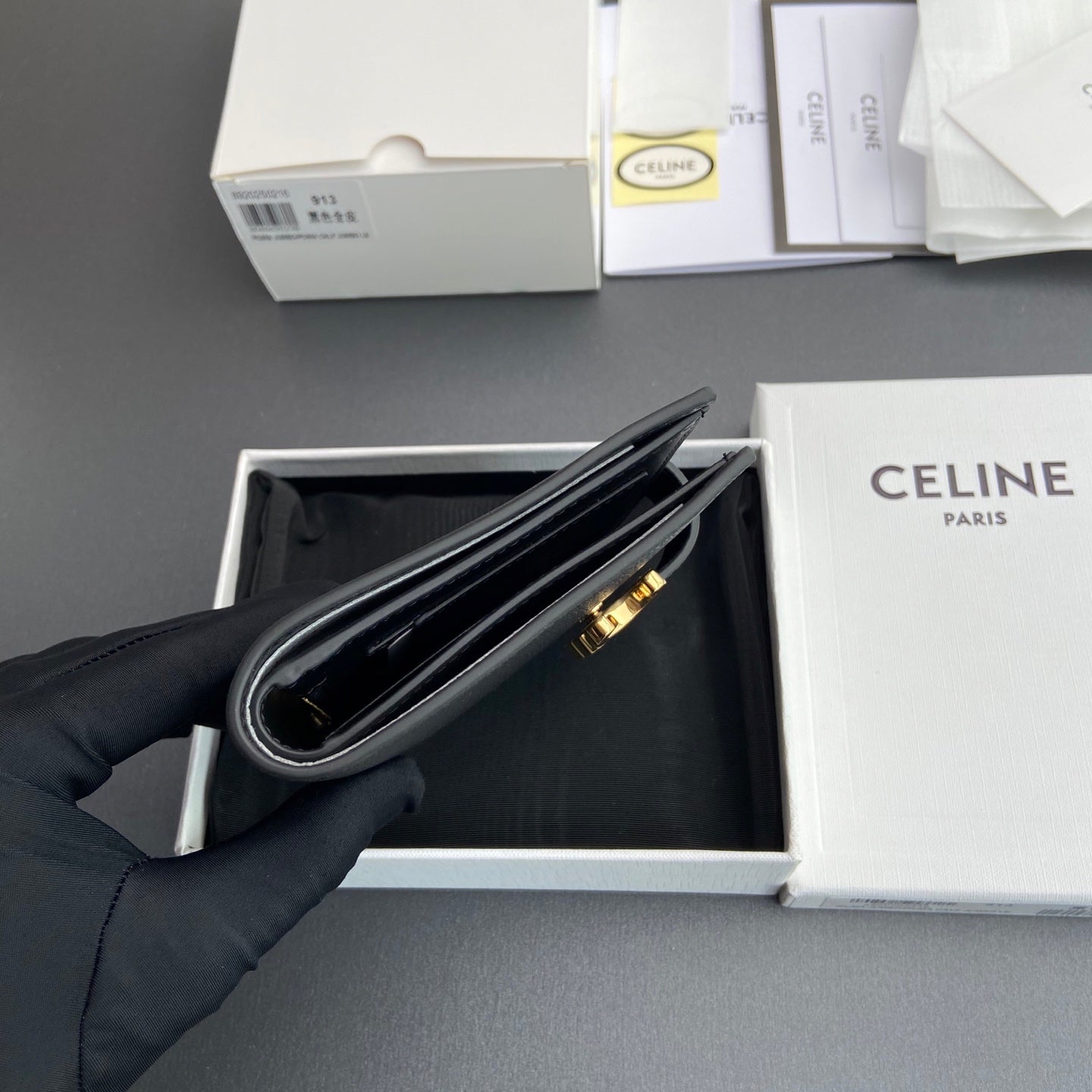 TRIOMPHE Medium Strap Wallet Black Grain Cowhide GHW