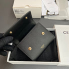 TRIOMPHE Tri-fold Wallet Black Grain Cowhide