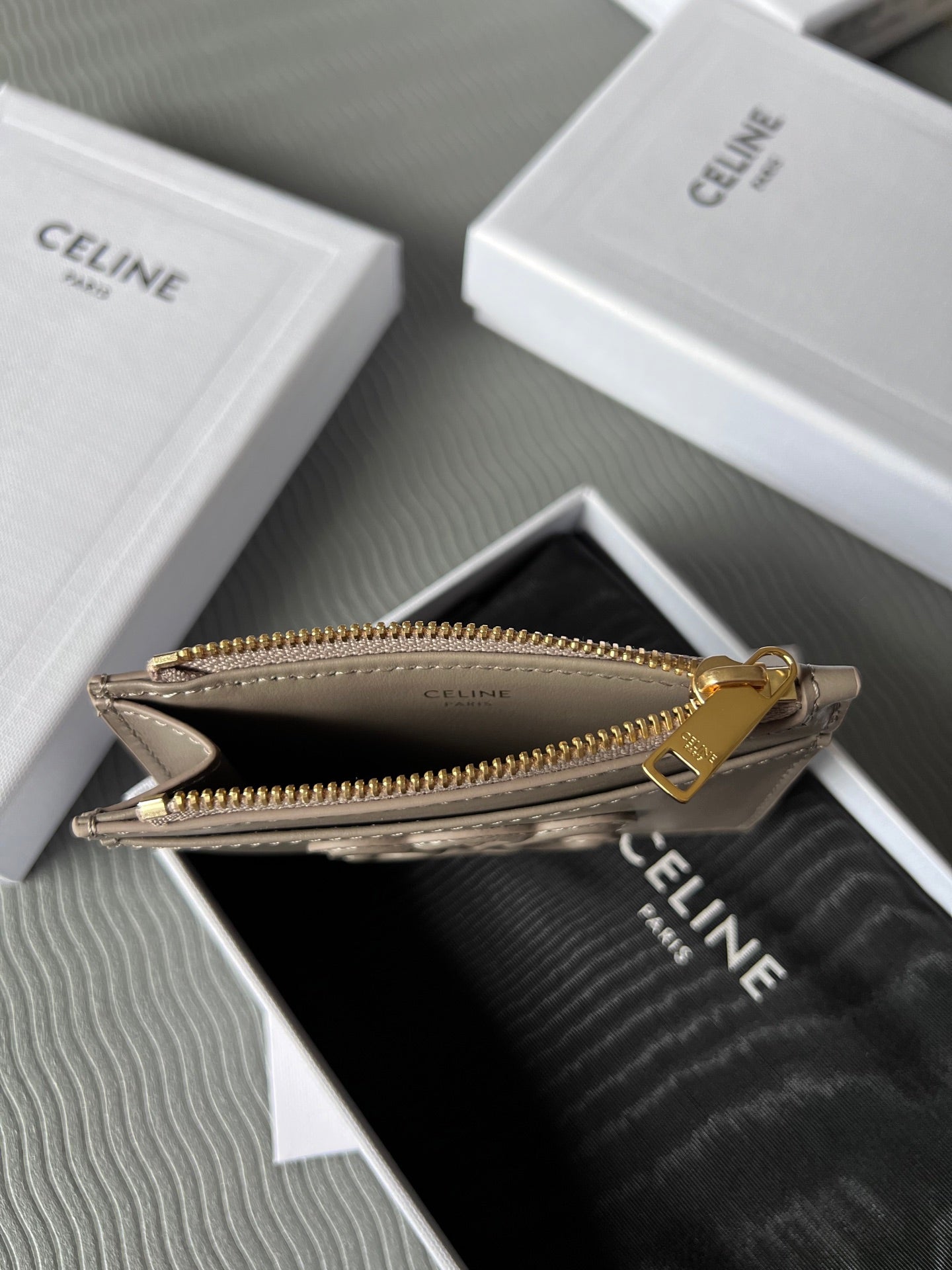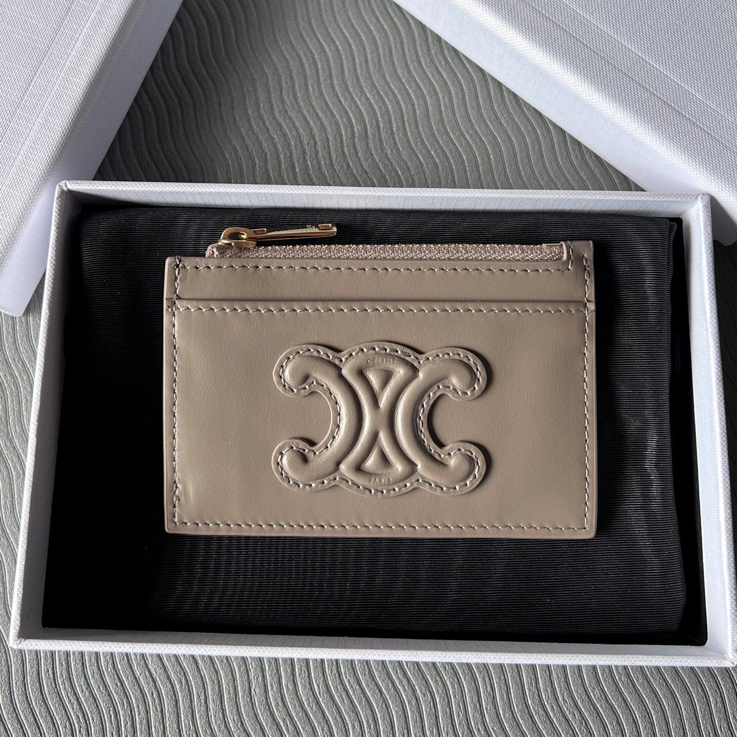 TRIOMPHE Zipped Card Holder Modern Taupe Cowhide Leather