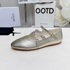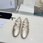 BALLET FLAT WITH CROSSOVER STRAP IN LIGHT GOLD LAMBSKIN