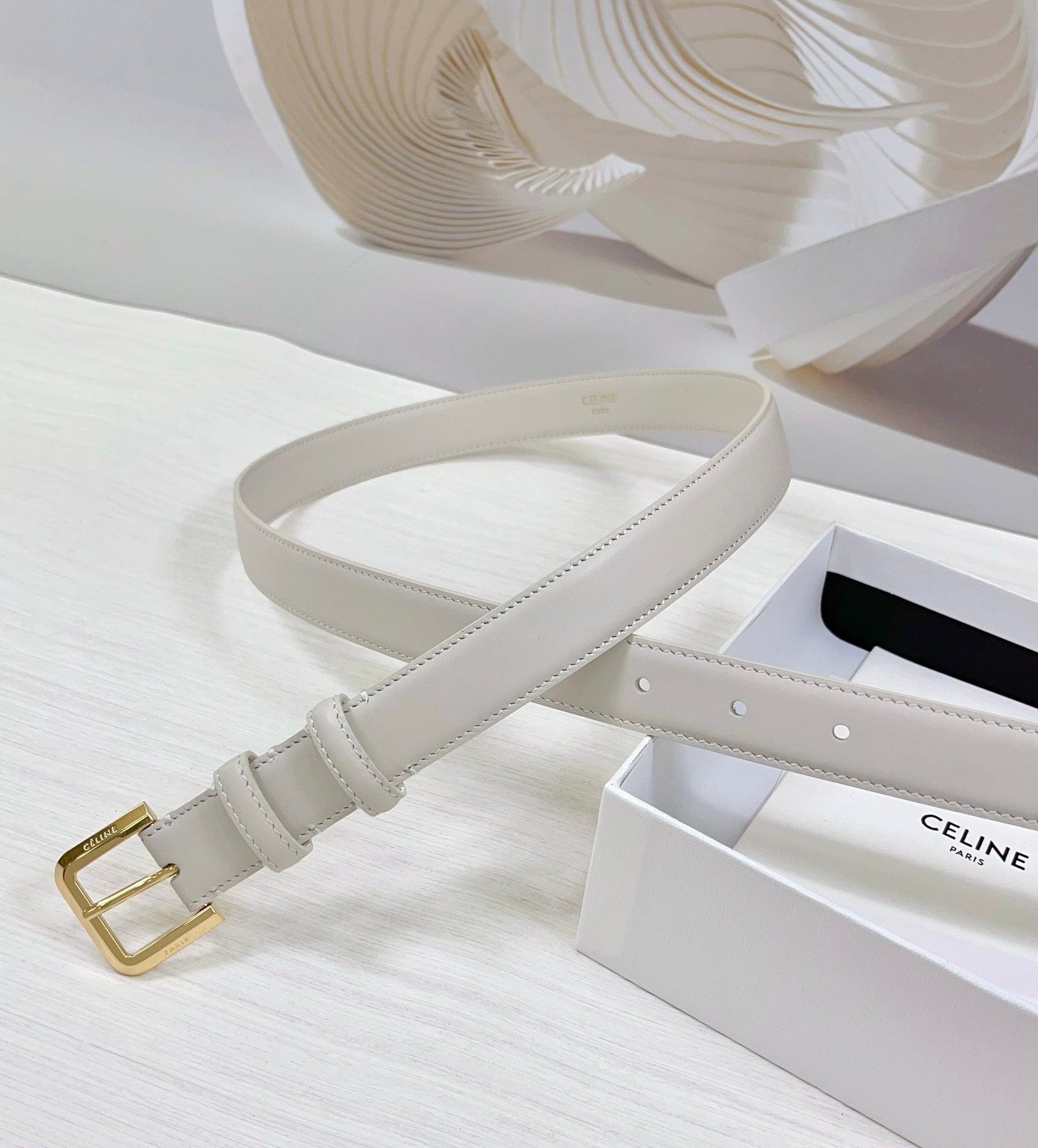 CEL Gold Western 25mm Belt White Cowhide 181047