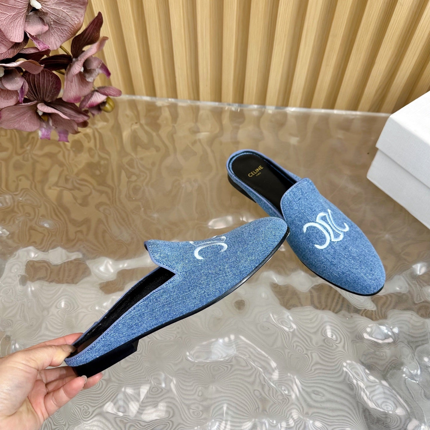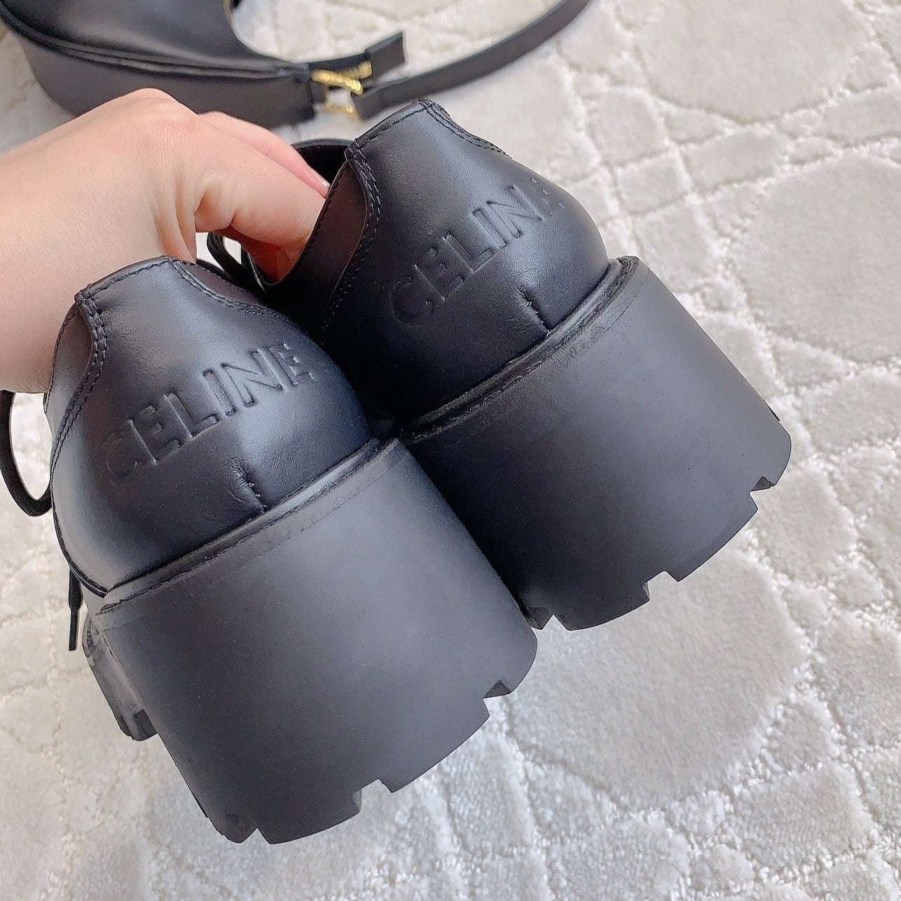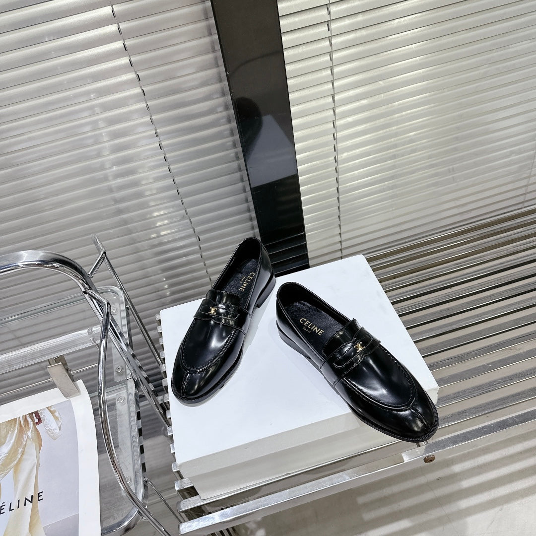 CELINE Buckle Triomphe Loafers Black Leather 285958