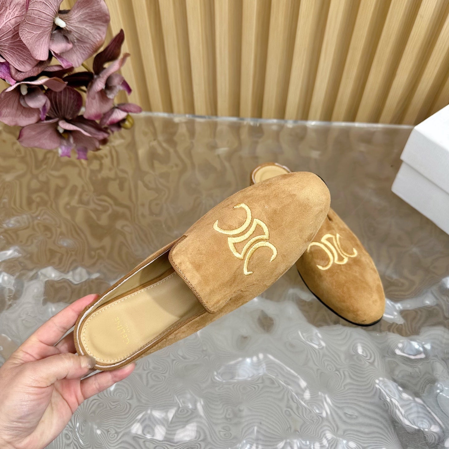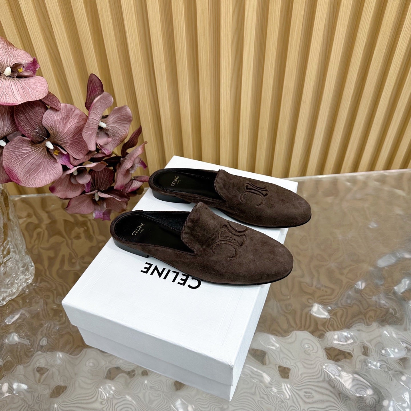 CELINE Buckle Triomphe Loafers Golden Leather 285955
