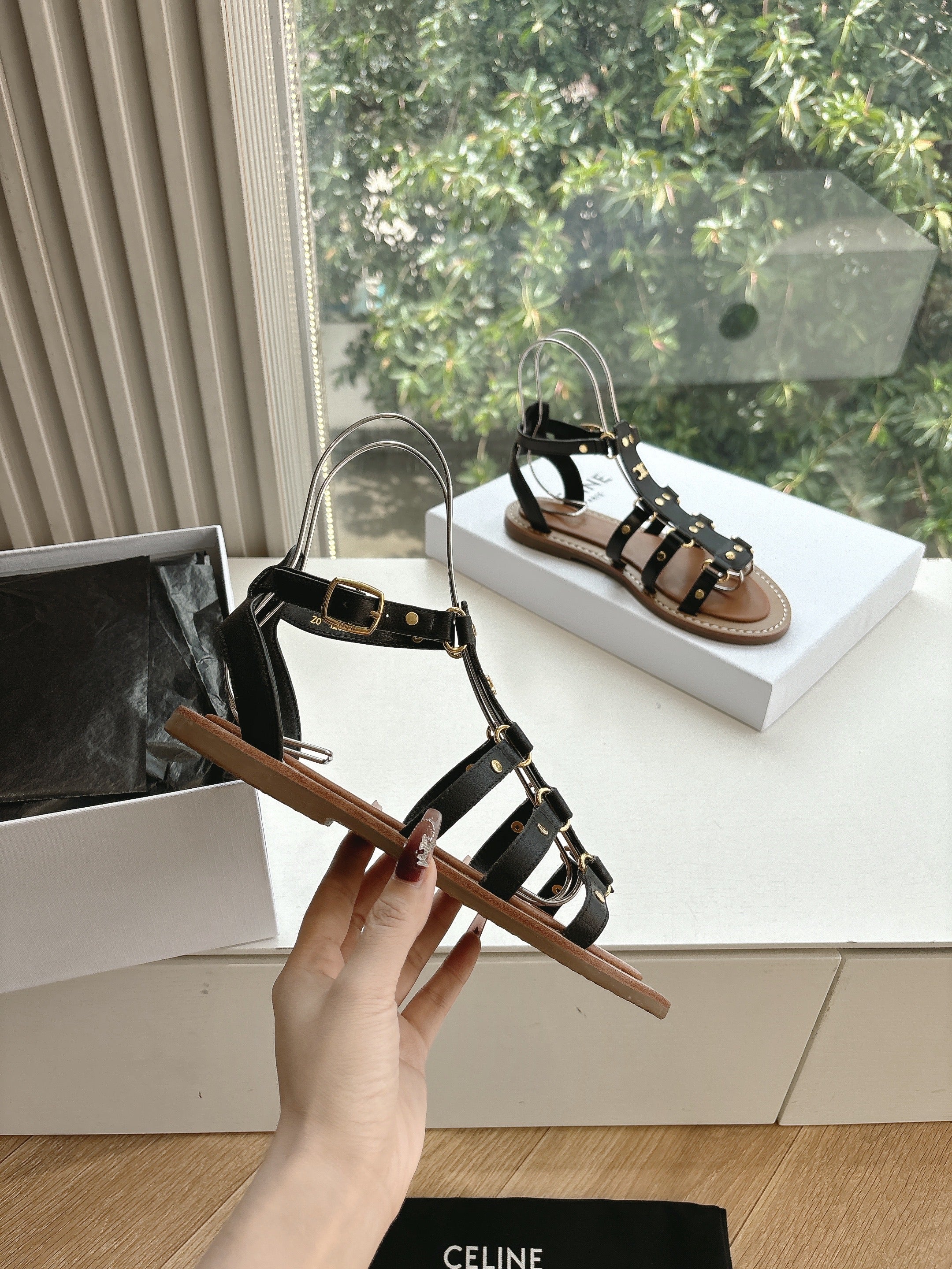 Celine Gladiator Style Sandal Black Calfskin
