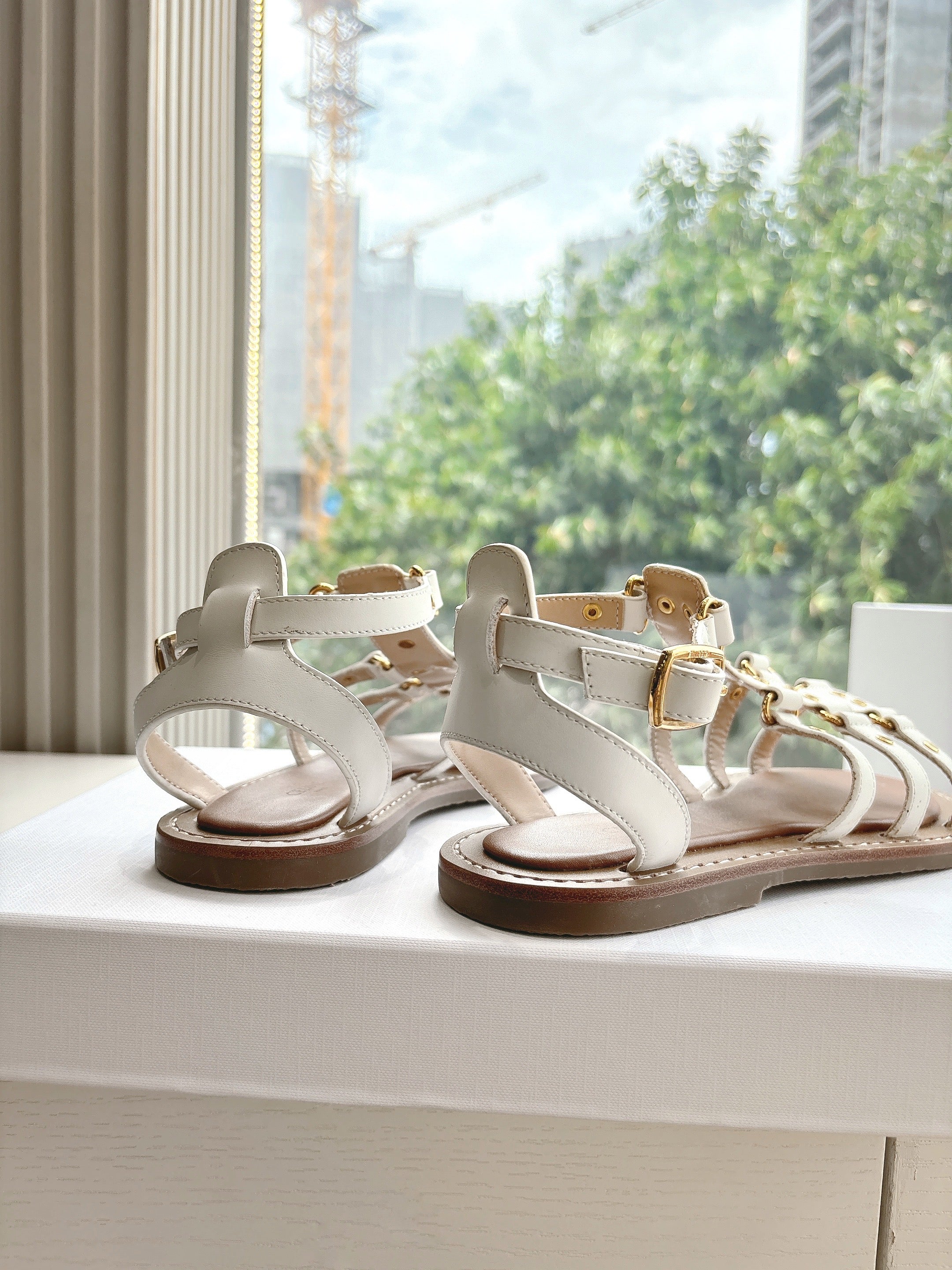 CL Lympia Gladiator Sandal In White Tan Calfskin 319898